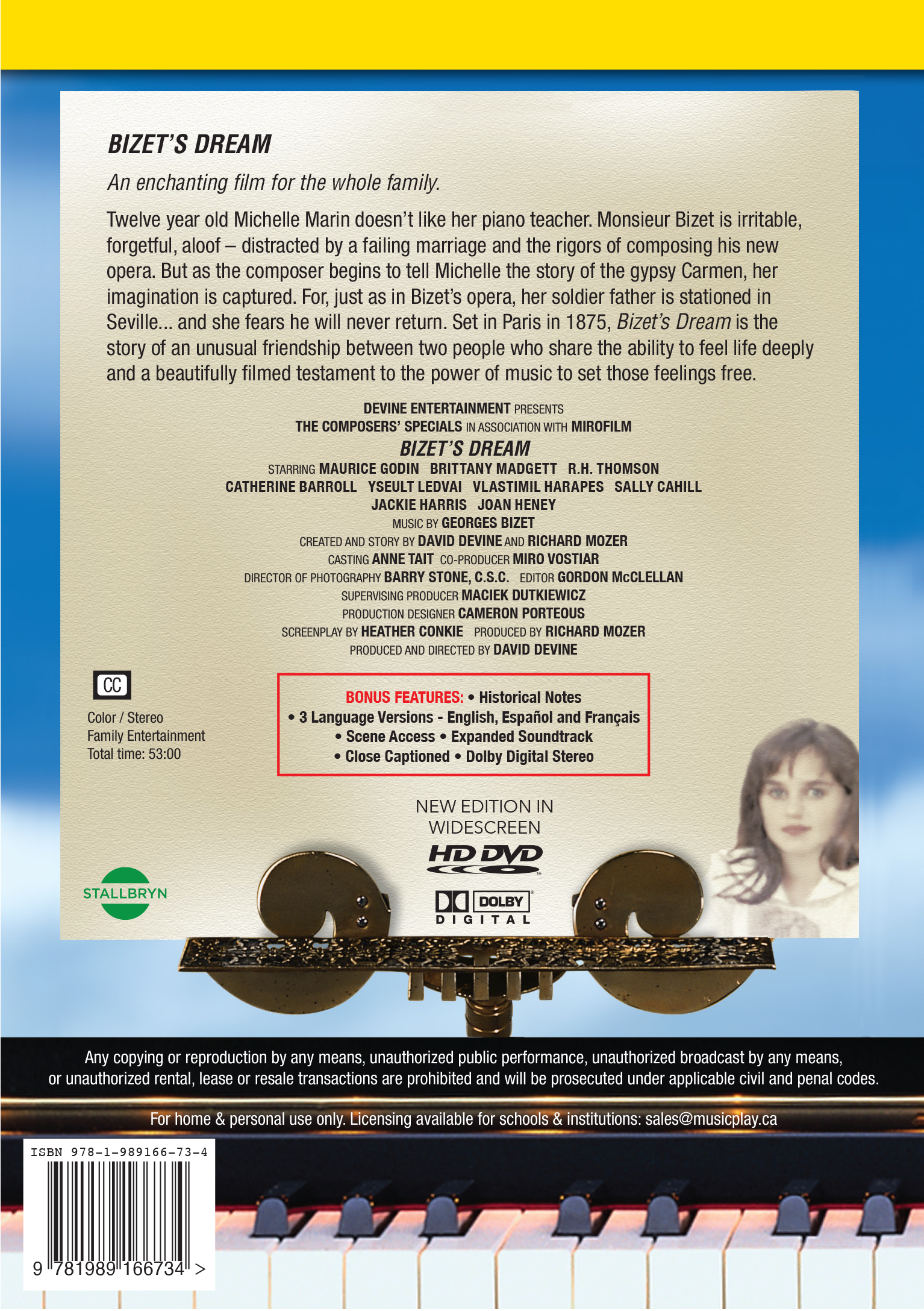 Twelve year old Michelle Marin doesn’t like her piano teacher. Monsieur Bizet is irritable, forgetful, aloof - distracted by a failing marriage and the rigors of composing his new opera. But as the composer begins to tell Michelle the story of the gypsy Carmen, her imagination is captured. For, just as in Bizet’s opera, her soldier father is stationed in Seville… and she fears he will never return. Set in Paris in 1875, Bizet’s Dream is the story of an unusual friendship between two people who share the ability to feel life deeply and a beautifully filmed testament to the power of music to set those feelings free.