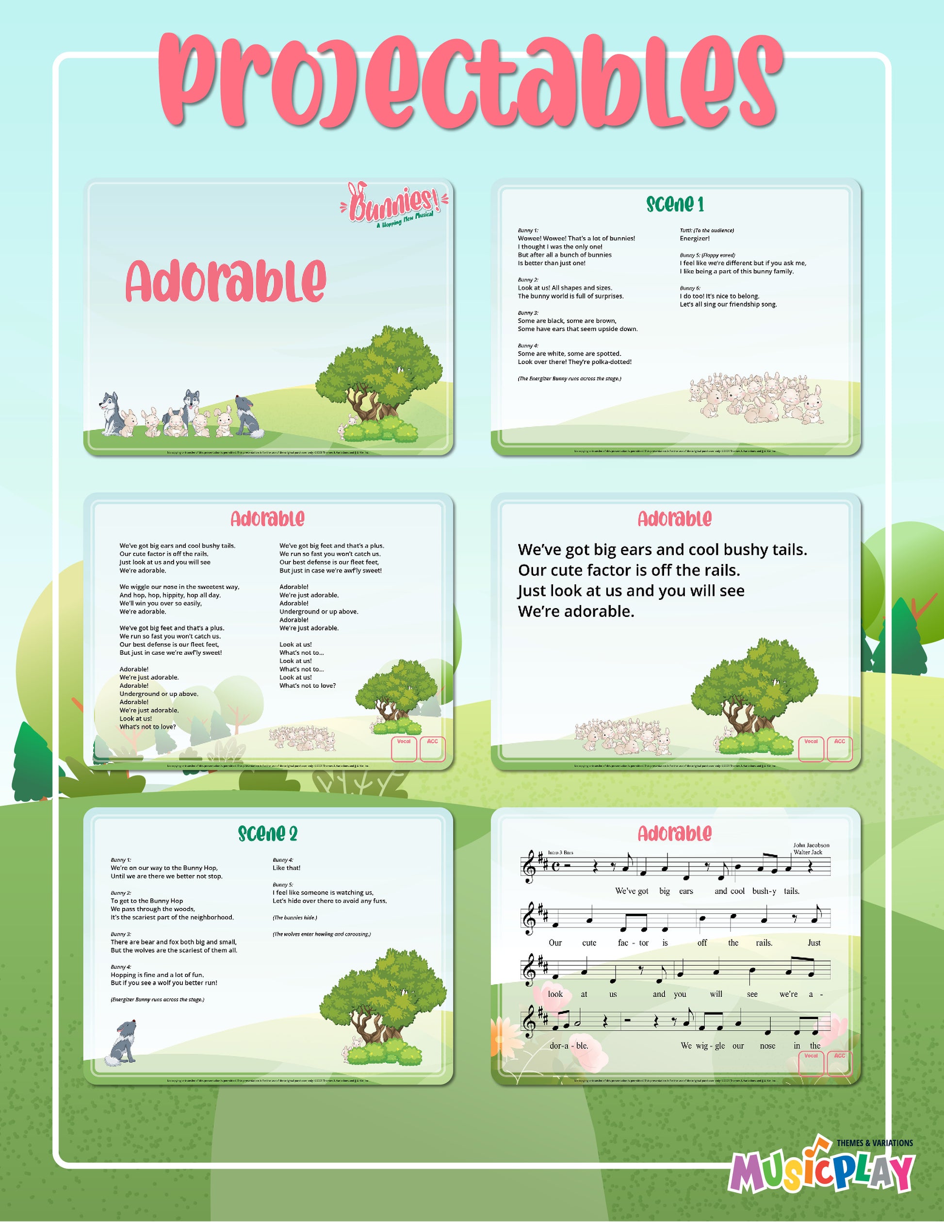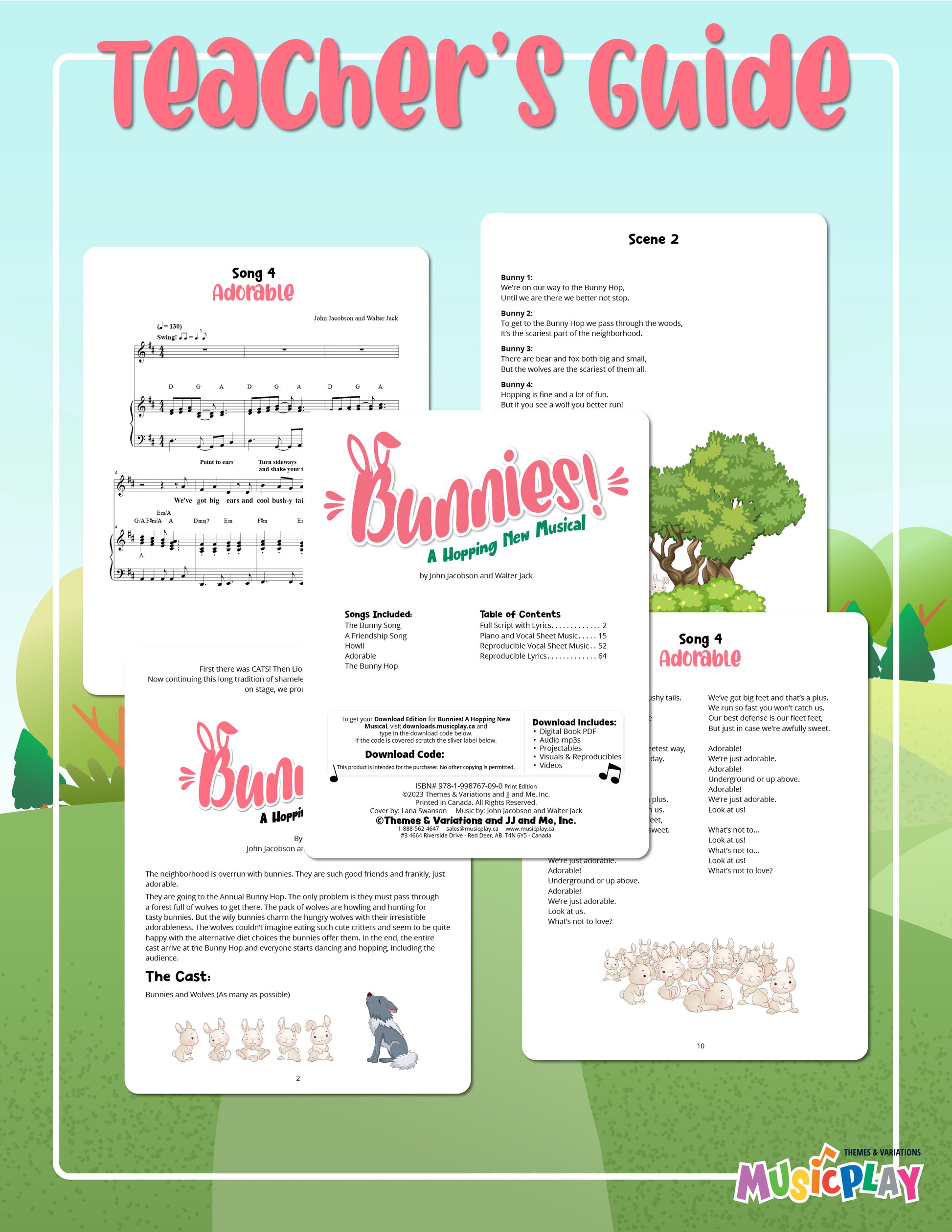 This musical is a treasure trove for teachers, including a comprehensive guide with a script, piano scores, and reproducible vocal and lyric sheets. With your purchase, you'll also receive a digital download packed with projectables (lyrics/notation), videos (lyrics/notation/choreography), vocal and accompaniment tracks, and the teacher guide in digital format.