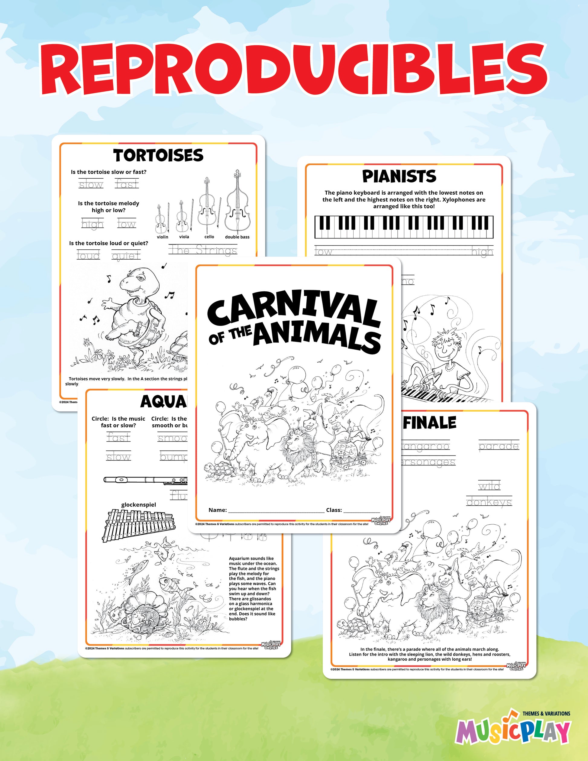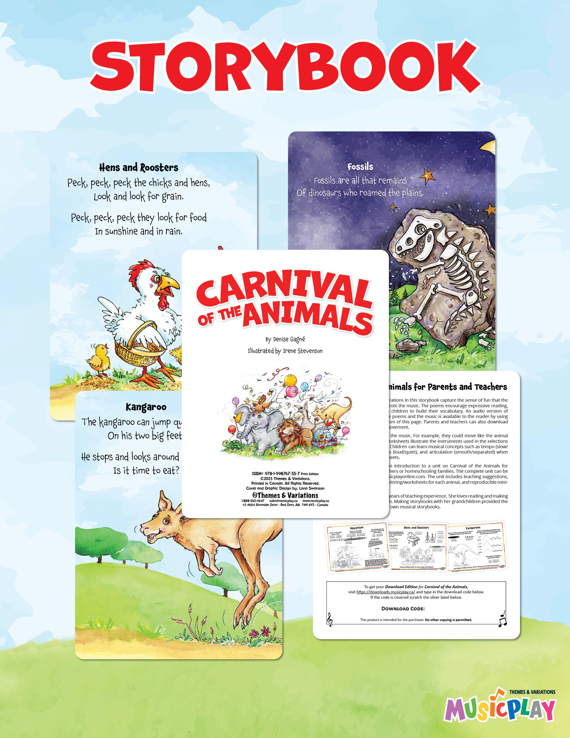 This storybook’s digital download pack grants you access to the storybook read by the author, musical selections from Carnival of the Animals, and coloring worksheets to help you bring each animal to life.