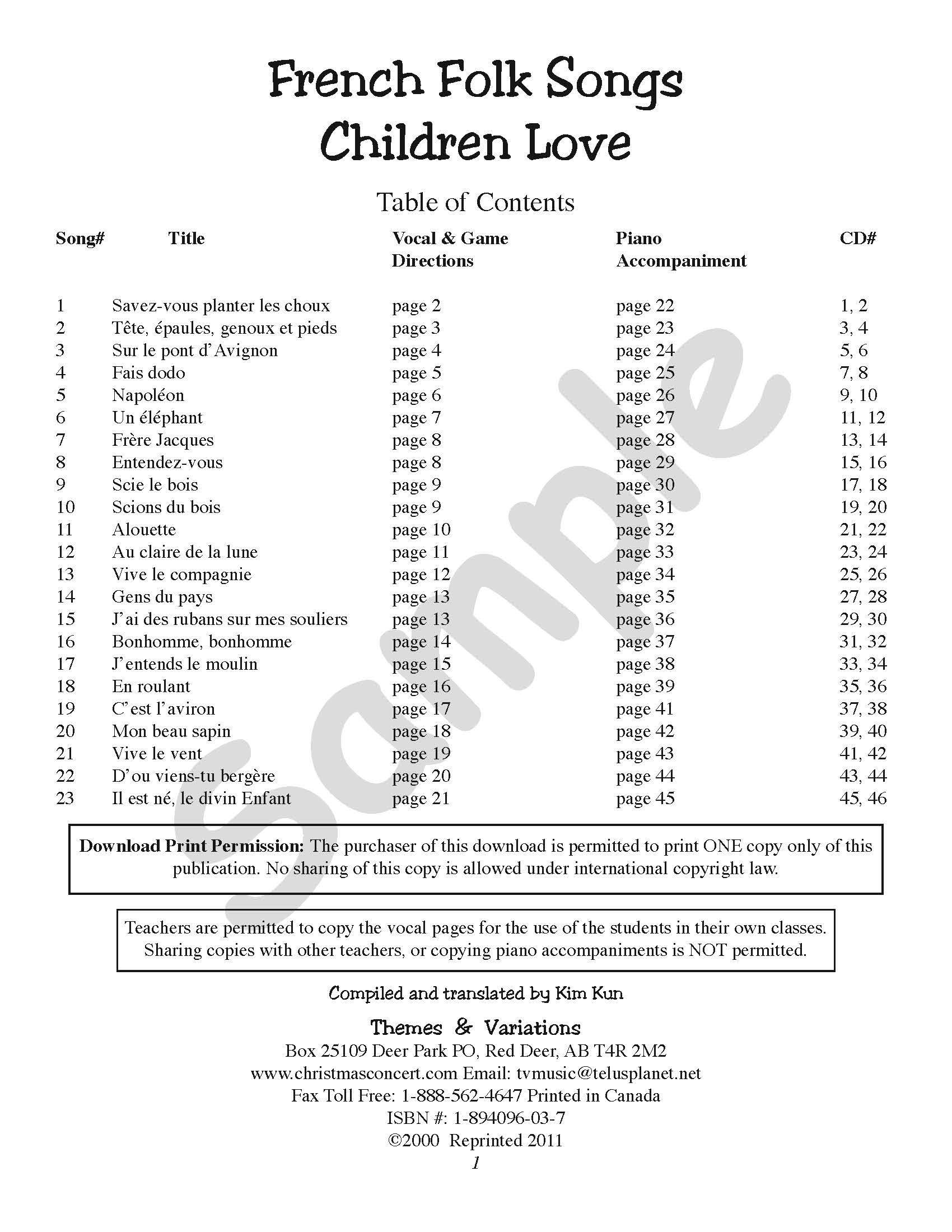 This collection of traditional French folk songs was jointly produced by Themes & Variations and the Red Deer Public School District #104.
