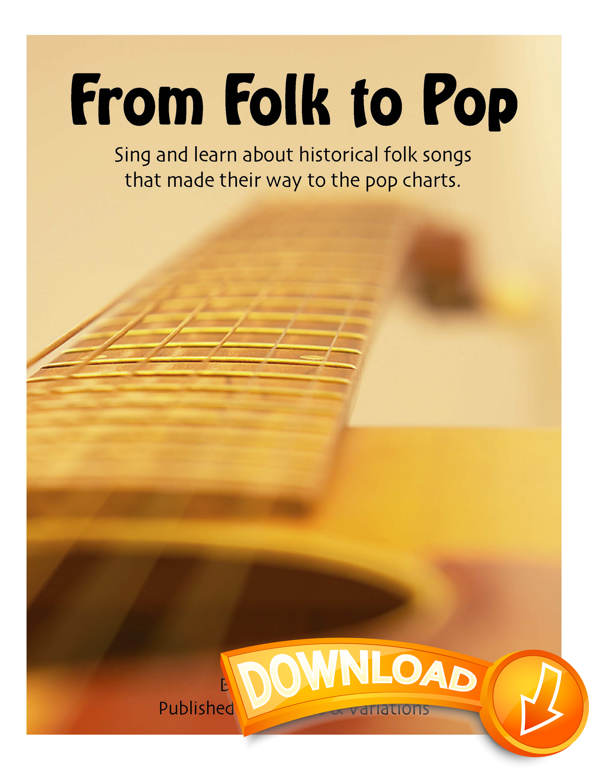 From Folk to Pop is a set of lesson plans for Grades 3-6 based on traditional folk songs that have been recorded by rock singers and found their way to the pop charts. The lessons include learning to sing the song, creating and adding accompaniments and descants, and playing the song on instruments. The collection also includes a history of the song, listening activities, and YouTube links to compare the traditional with the pop version. There are assessment suggestions and rubrics included. The collection includes reproducibles, piano/vocal scores, and performance/accompaniment recordings.