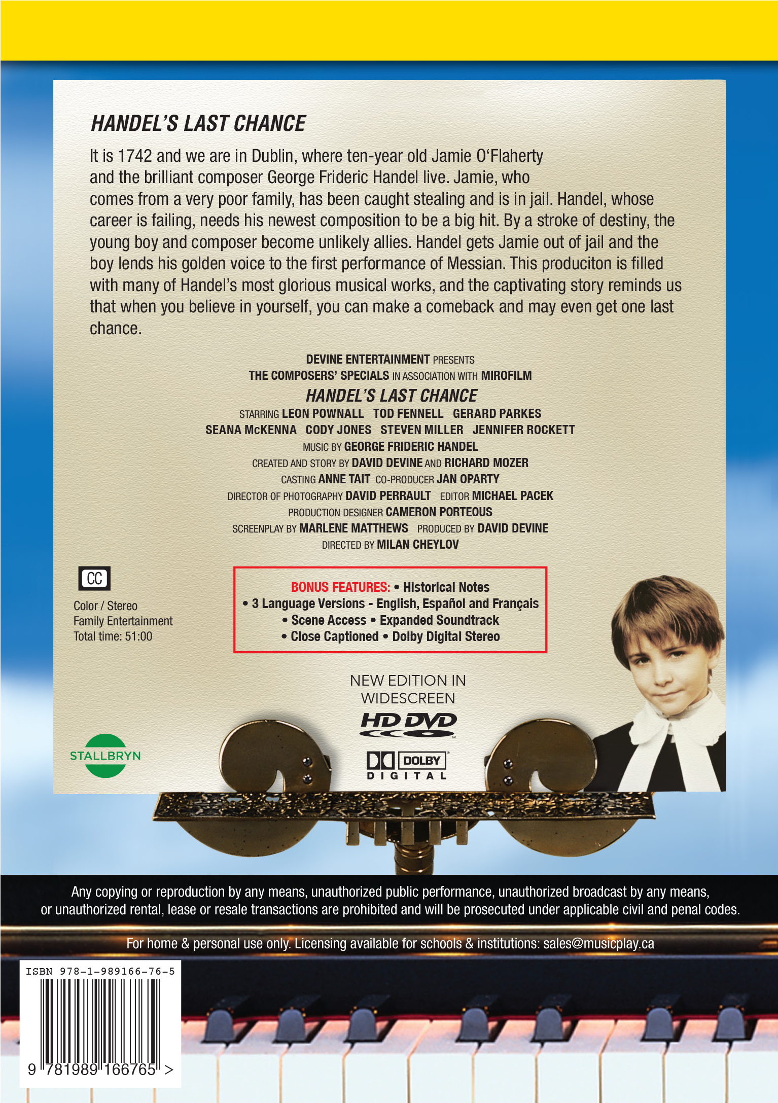 It is 1742 and we are in Dublin, where ten-year old Jamie O’Flaherty and the brilliant composer George Frideric Handel live. Jamie, who comes from a very poor family, has been caught stealing and is in jail. Handel, whose career is failing, needs his newest composition to be a big hit. By a stroke of destiny, the young boy and composer become unlikely allies. Handel gets Jamie out of jail and the boy lends his golden voice to the first performance of Messiah. The production is filled with many of Handel’s most glorious musical works, and the captivating story reminds us that when you believe in yourself, you can make a comeback and may even get one last chance.