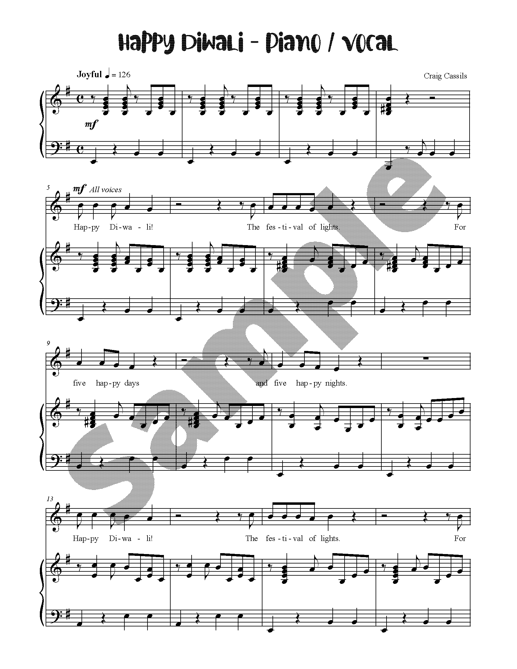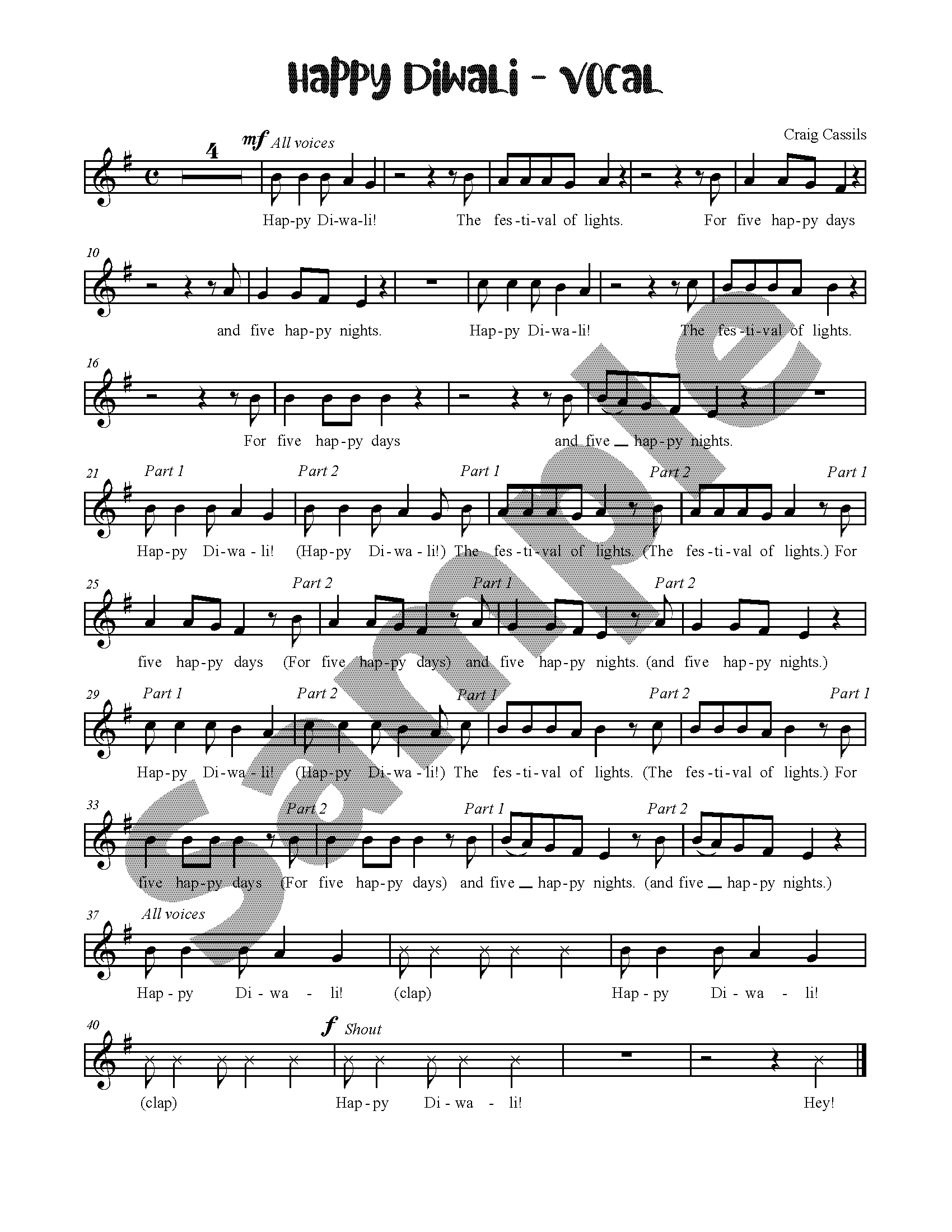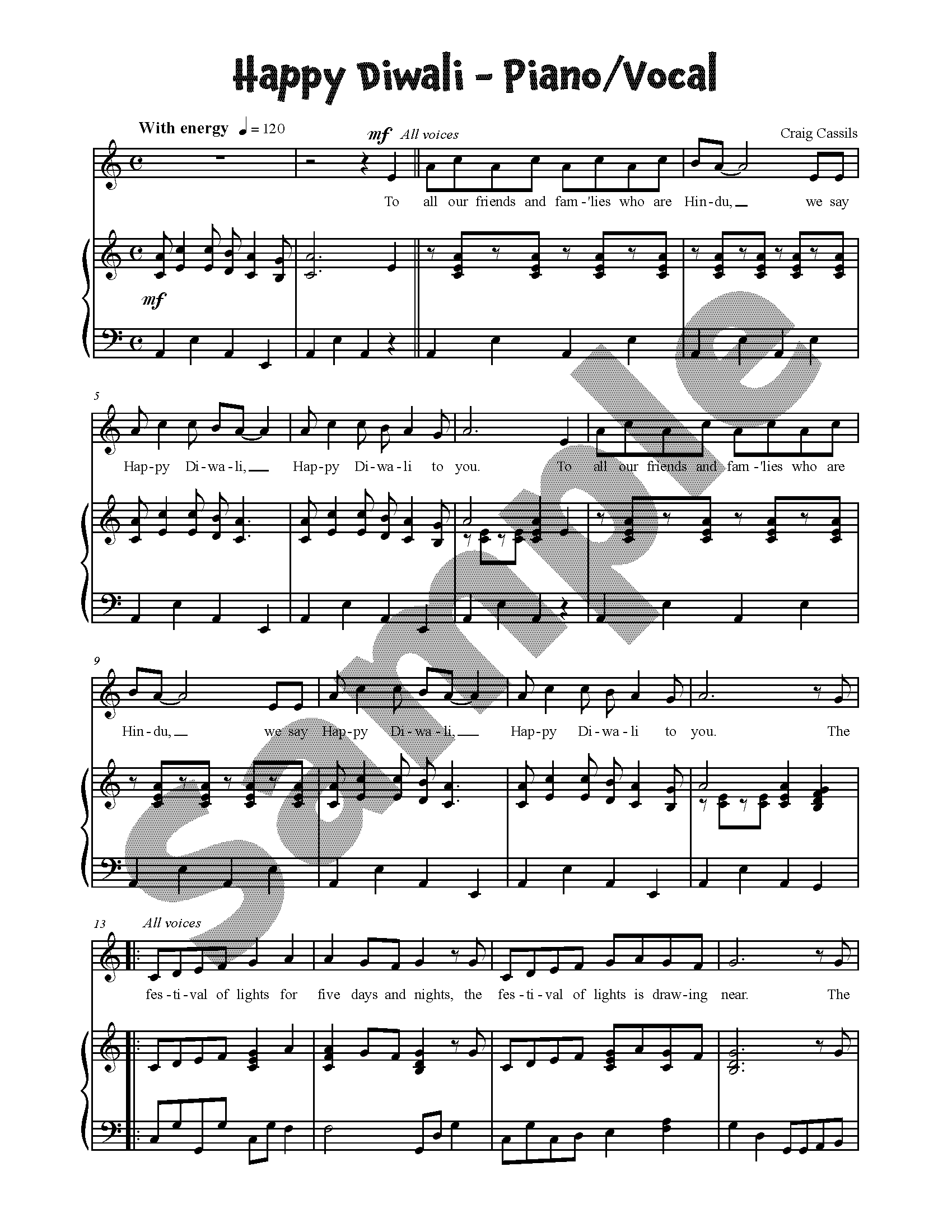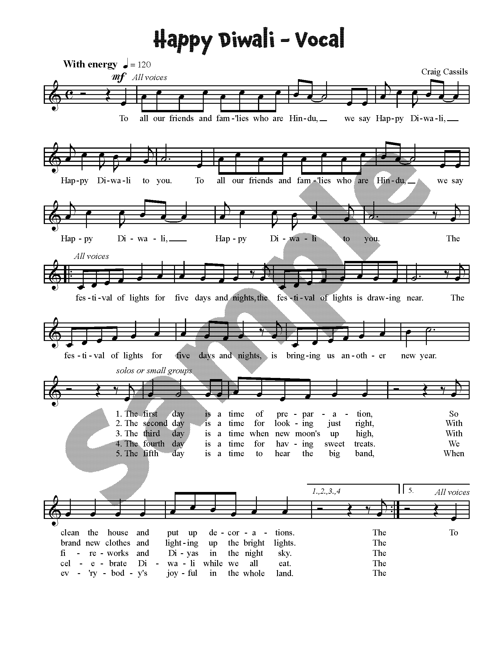 This is a unison choral arrangement of Happy Diwali, by Craig Cassils. This song can be found in Festivals and Holidays and Celebrate Around the World.