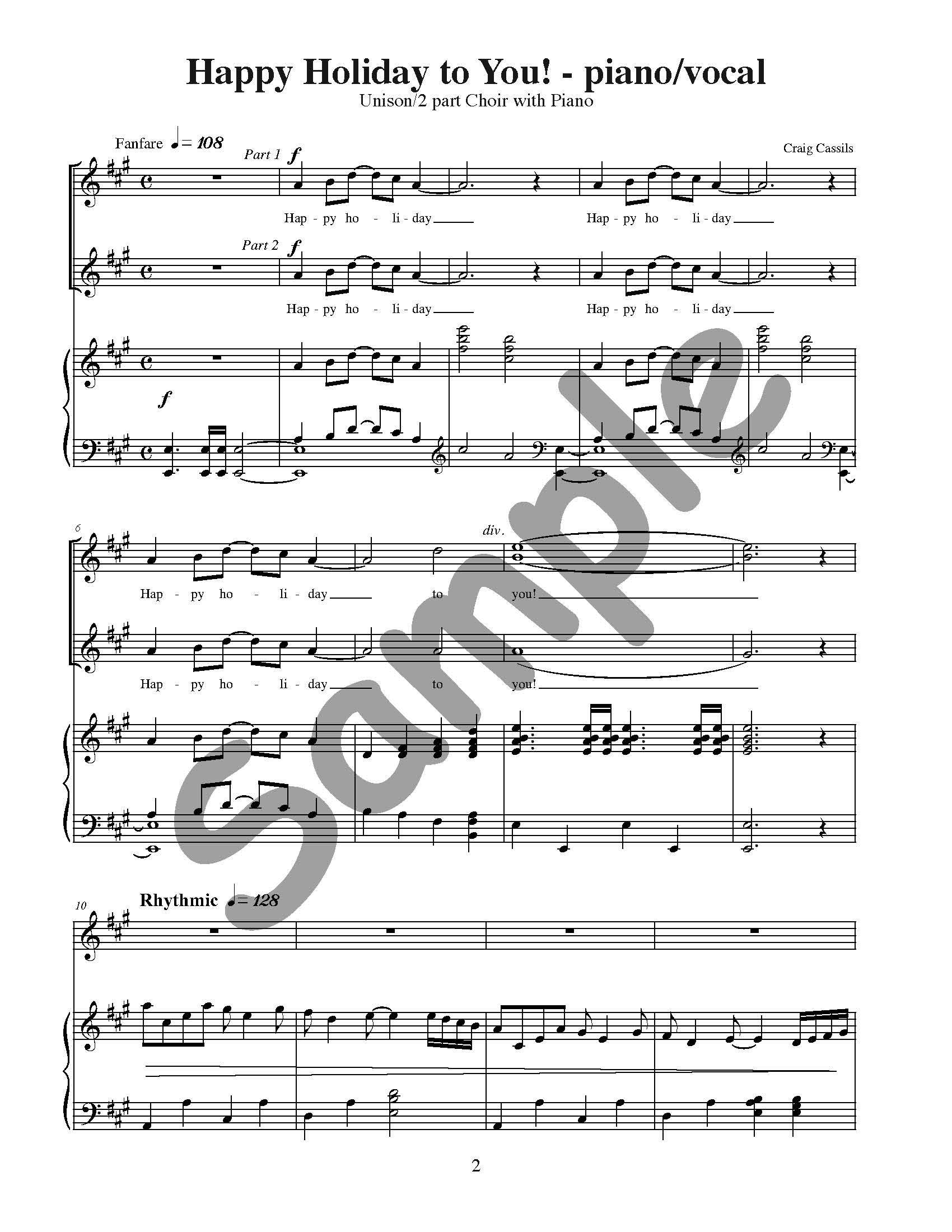 This is a unison/2-part choral arrangement of Happy Holiday to You, by Craig Cassils. This song is from the Happy Holidays collection.