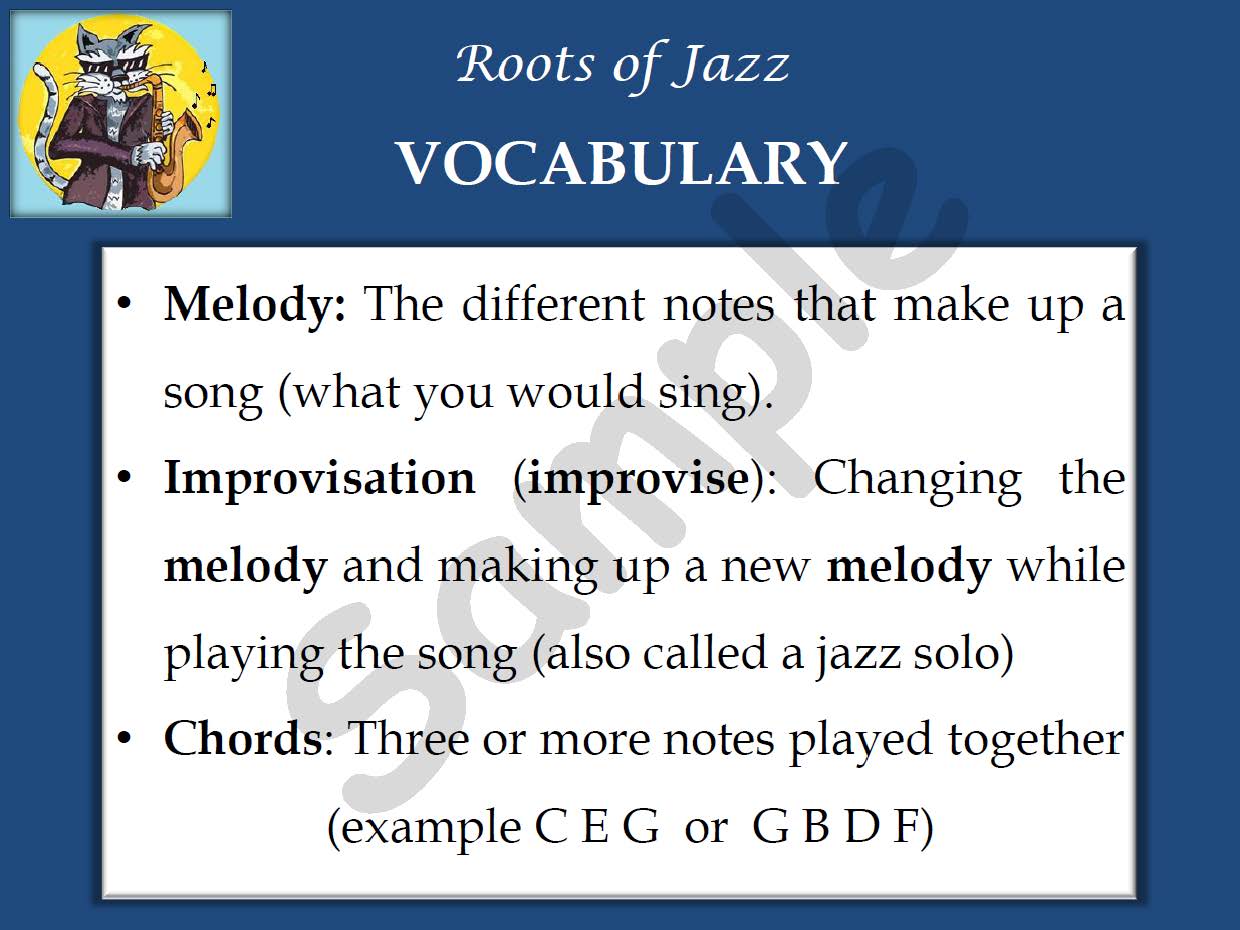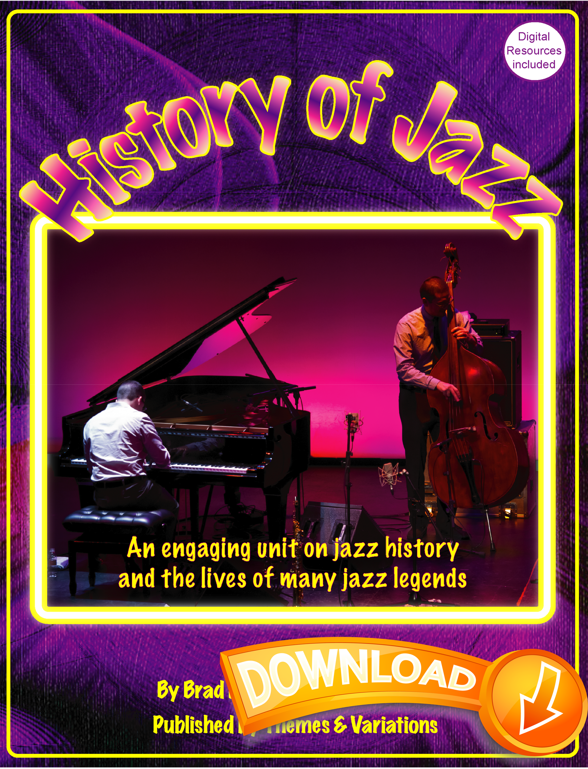 The History of Jazz includes 15 lessons on the major points of jazz history and some of the greatest jazz legends. It includes Digital Resources with PowerPoints and videos that present the information to the students. Students can complete reproducible pages on the lesson content and the guided listening as assessments or as notes. Listening examples are included as YouTube links in the PowerPoints, or you can use suggested materials from Apple Music.