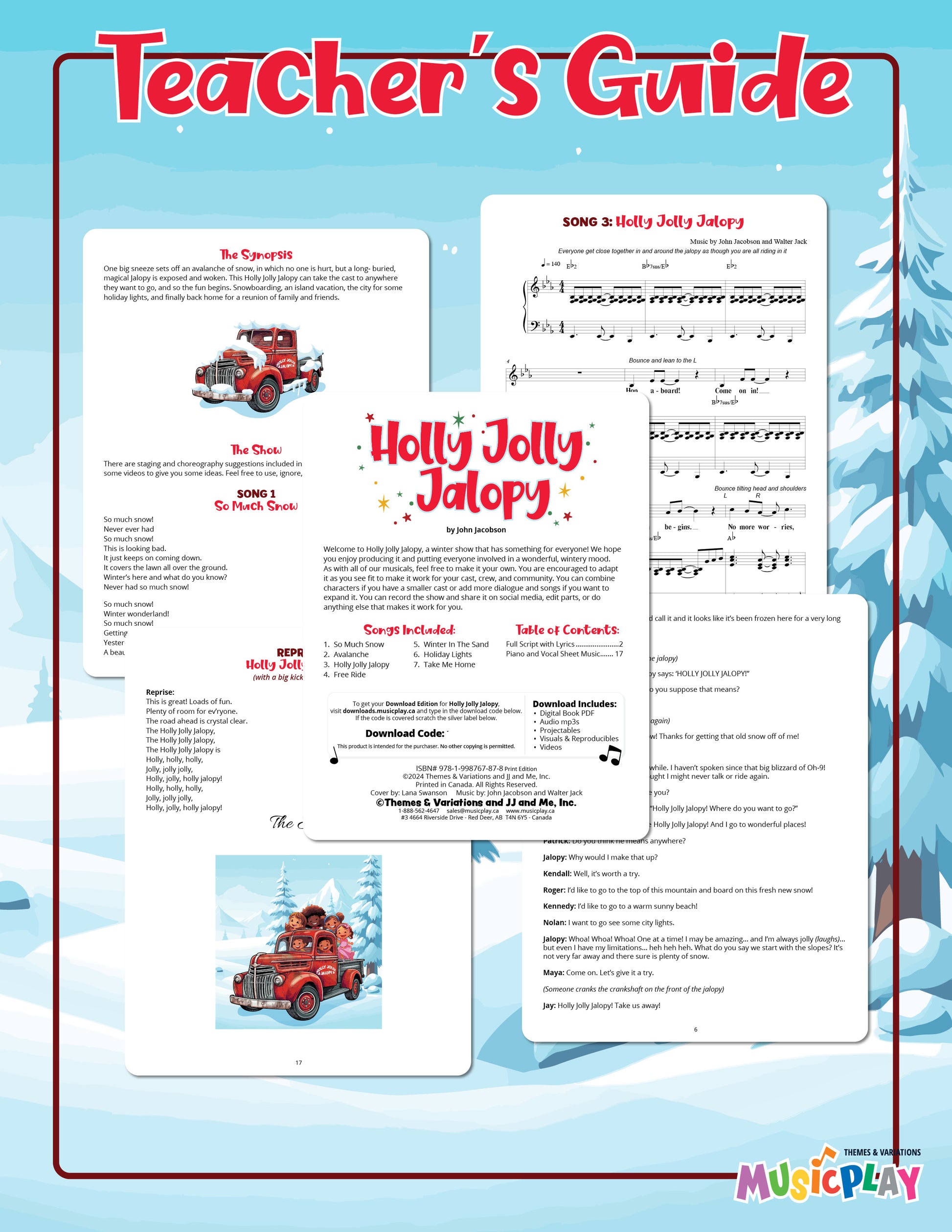 This musical is a treasure trove for teachers, including a comprehensive guide with a script, piano scores, and reproducible vocal and lyric sheets. With your purchase, you'll also receive a digital download packed with projectables (lyrics/notation), videos (lyrics/notation/choreography), vocal and accompaniment tracks, and the teacher guide in digital format.