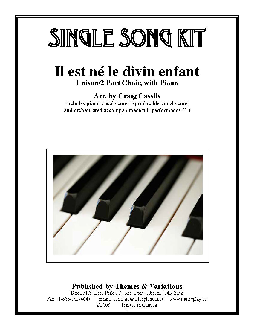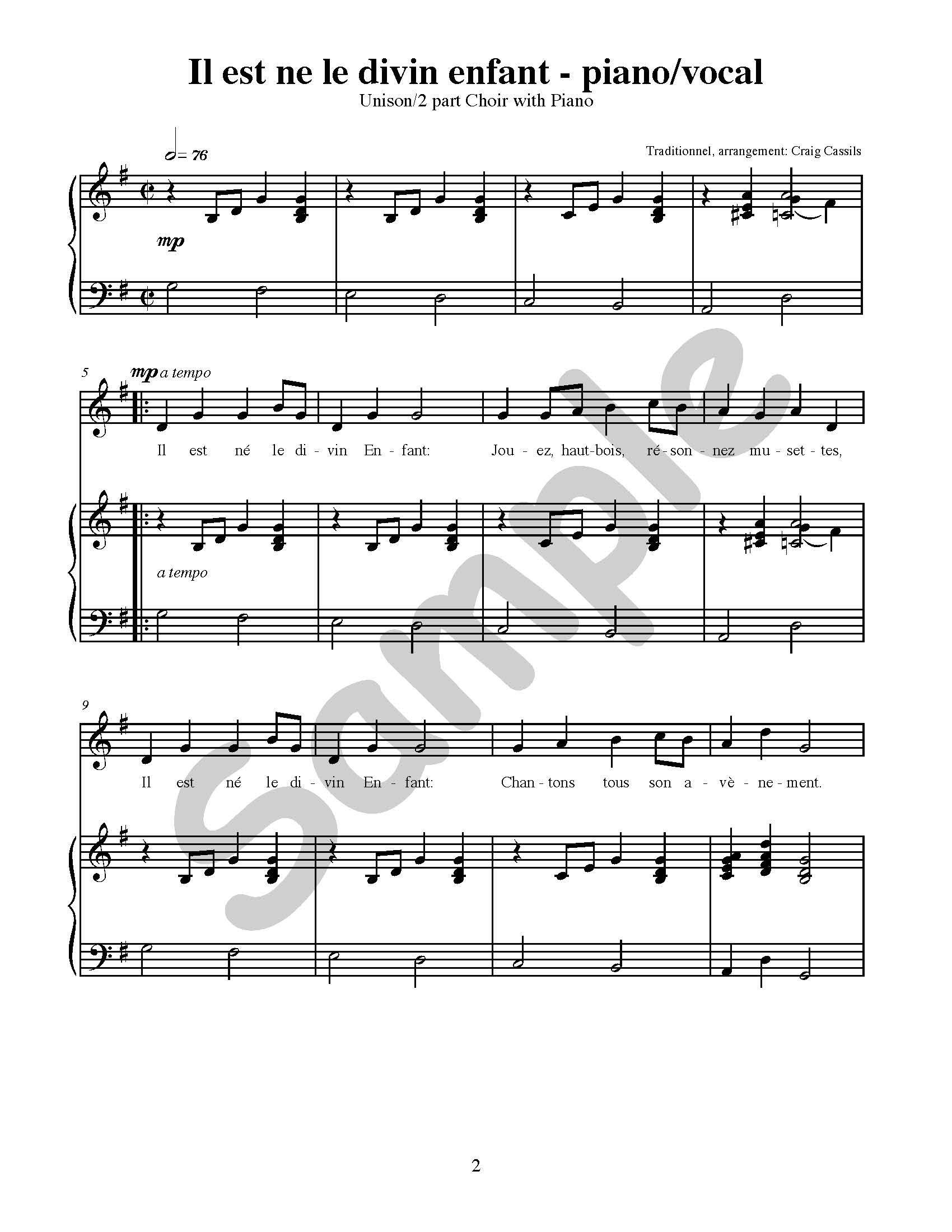 This is a unison or two part choral arrangement with piano accompaniment for Il est né le Divin enfant arranged by Craig Cassils. This song can be found in Chants de Noël and French Folk Songs collections.