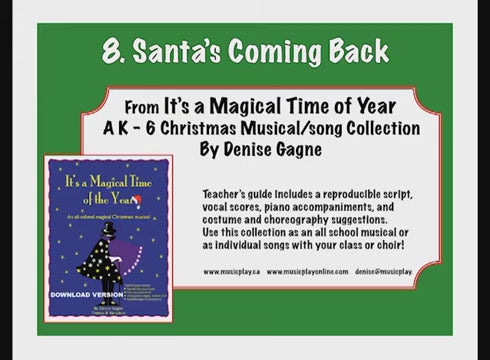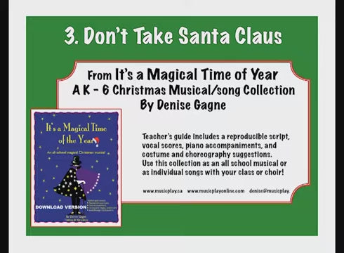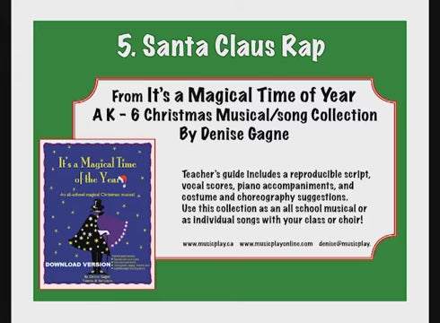 A nasty magician, The Grunch, has made Santa Claus disappear. The classes in your school try their best magic tricks to make Santa reappear. They even appeal to the famous magicians Sigmund and Freud for help, but all that appears is a stuffed tiger and Santa’s boxer shorts! Every class has a magic trick and a song in a style varying from country and western line dance music to Elvis style rock and roll. Complete directions for the magic tricks are included.