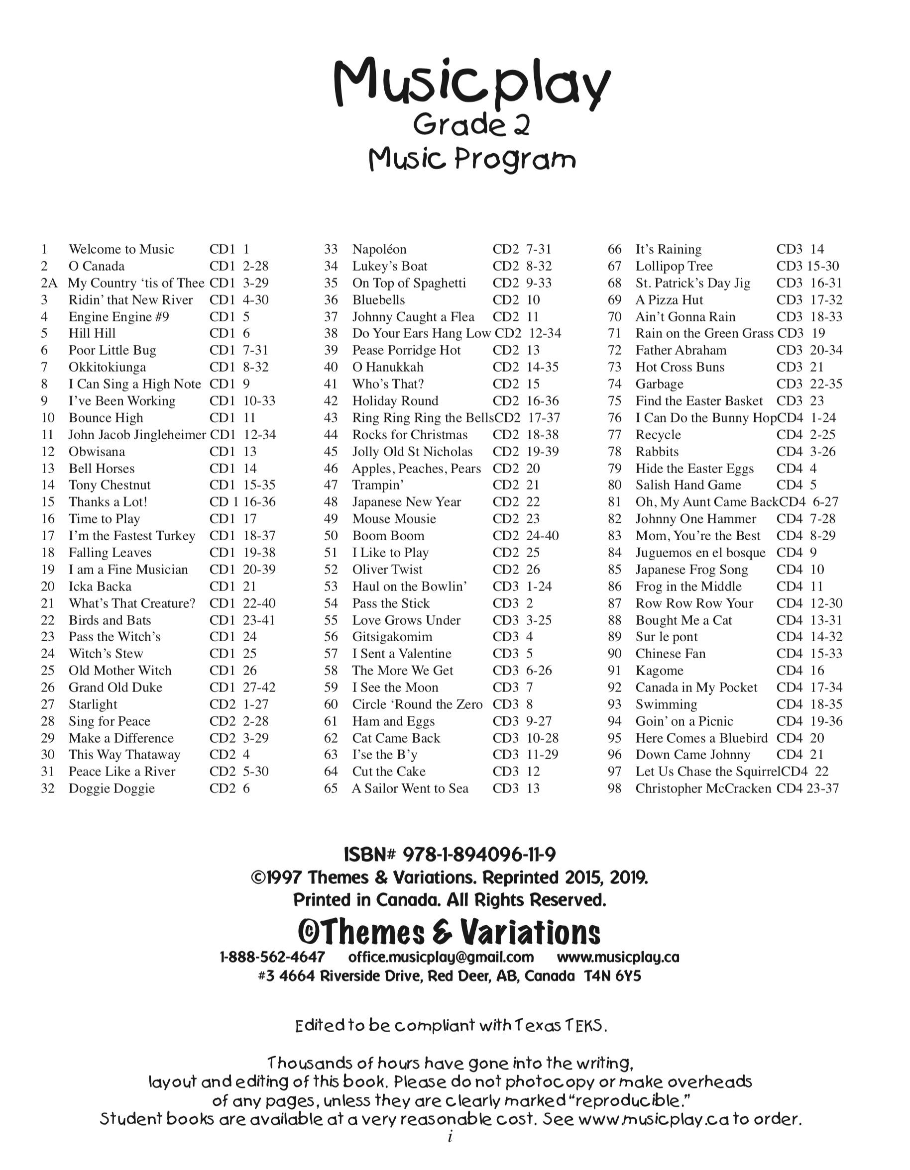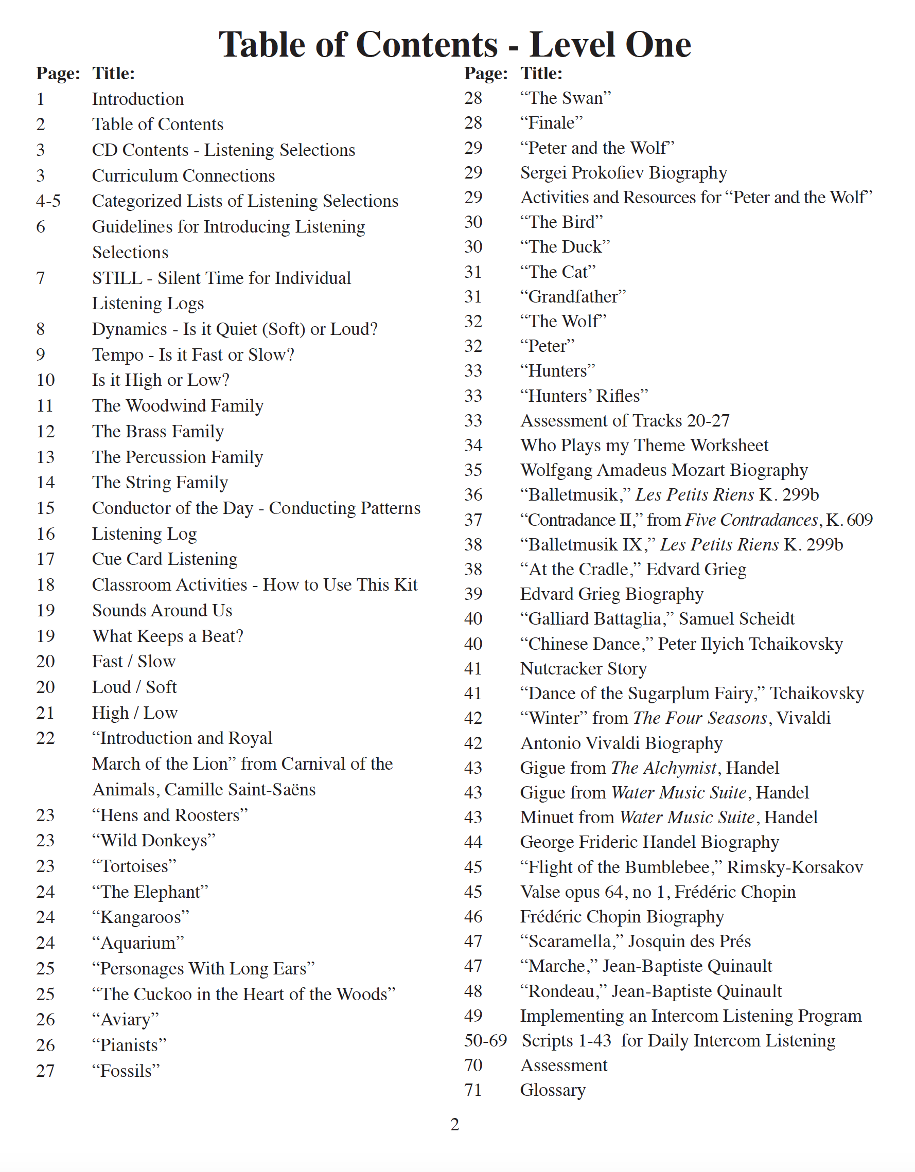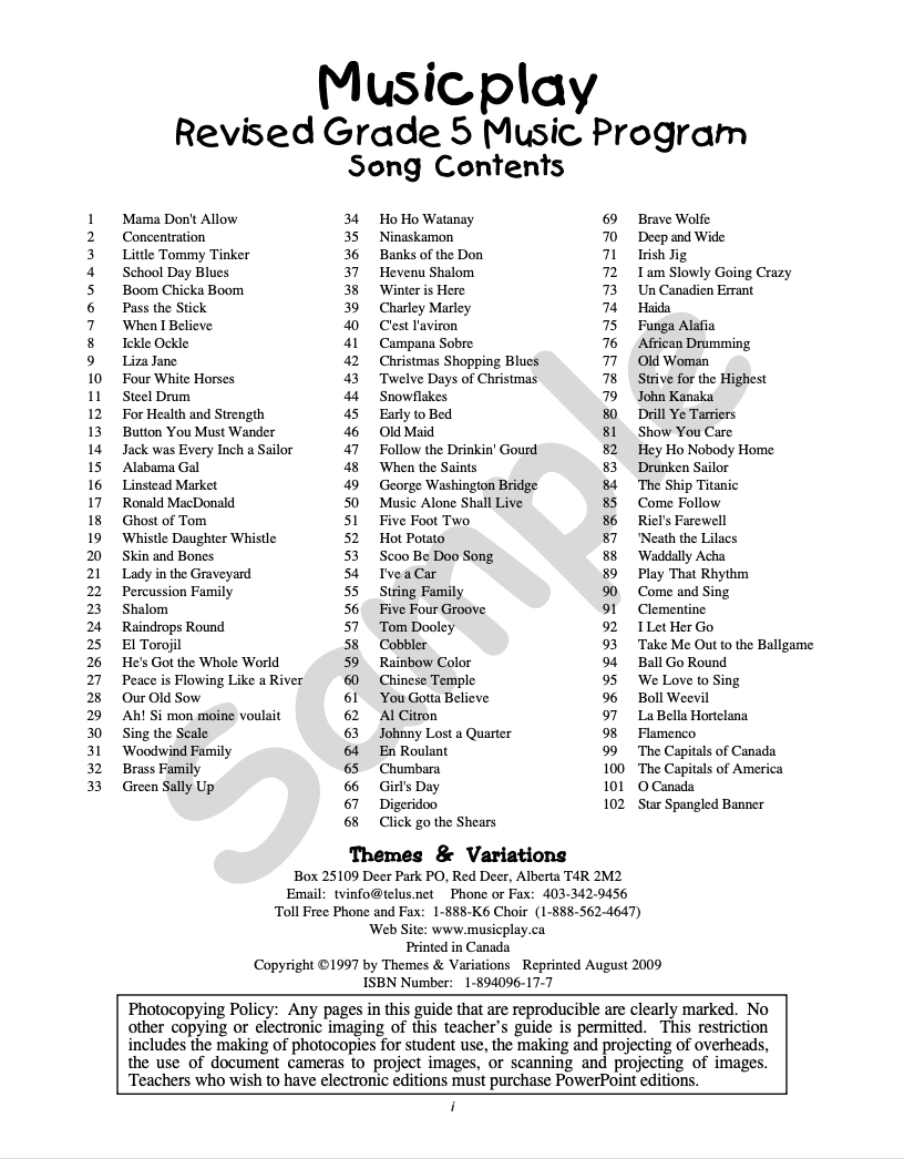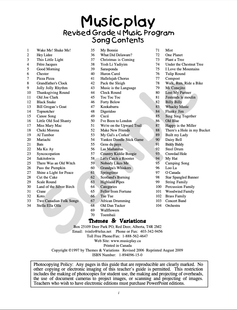|  | Teacher's Guide (Includes a binder full of teaching suggestions and a sequenced curriculum. Including performance and accompaniment tracks MP3s.) |