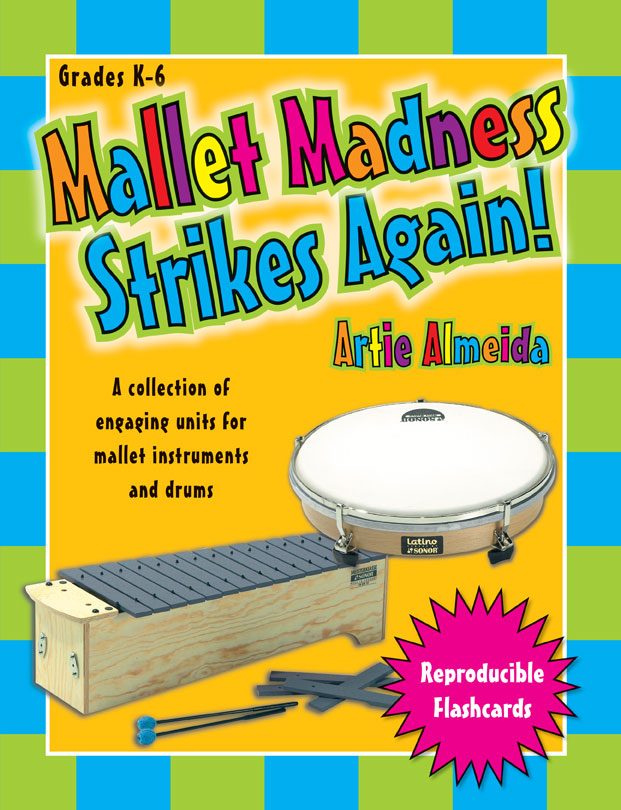 Inspiration has struck master teacher Artie Almeida once again! Catch the fever and join in the fun. Mallet Madness Strikes Again! features all new rhythm, melody, harmony, and timbre lessons designed for your mallet instruments. It also includes the ever-popular Literature and Music Connections with lessons based on children’s literature, plus a whole new Technique Builder section to improve your students’ mallet skills. Complete lessons and reproducible visuals are sure to provide you with all of the support that you need to deliver engaging and exciting lessons for your young musicians.