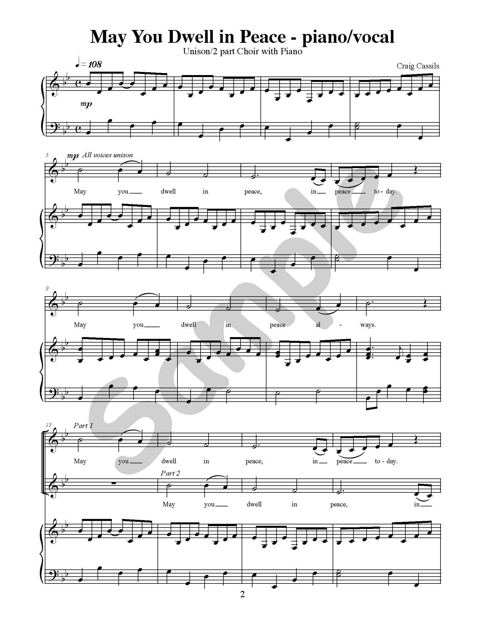 This is a 2 part choral arrangement of May You Dwell in Peace, by Craig Cassils. This song is from the We Remember collection. If your students are not ready to sing in 2 parts, sing it in unison!