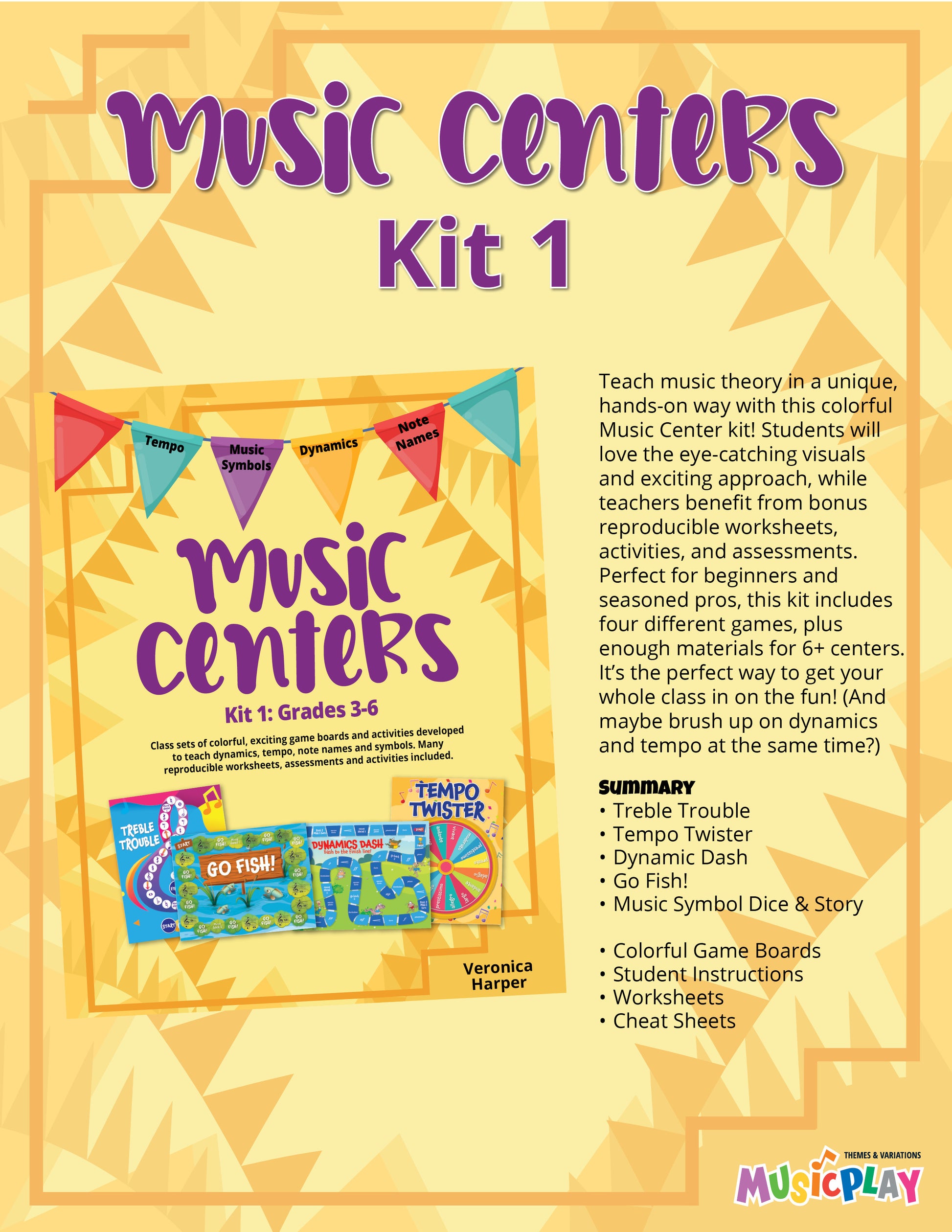 Music Centers are easily tailored to individual students in the music room, helping them become independent performers and learners. These Centers give teachers an opportunity to evaluate musical skills while the rest of the class engages in fun and meaningful play! Get set up and let your students take center stage.
