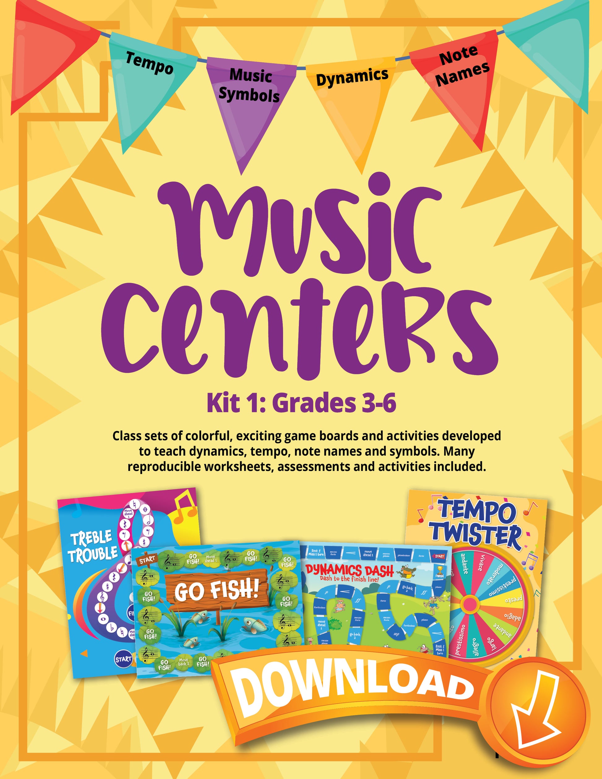Teach music theory in a unique, hands-on way with this colorful Music Centers kit! Students will love the eye-catching visuals and exciting approach, while teachers benefit from bonus reproducible worksheets, activities, and assessments. Perfect for beginners and seasoned pros, this kit includes four different games, plus enough materials for 6+ centers. It’s the perfect way to get your whole class in on the fun! (And maybe brush up on dynamics and tempo at the same time?)