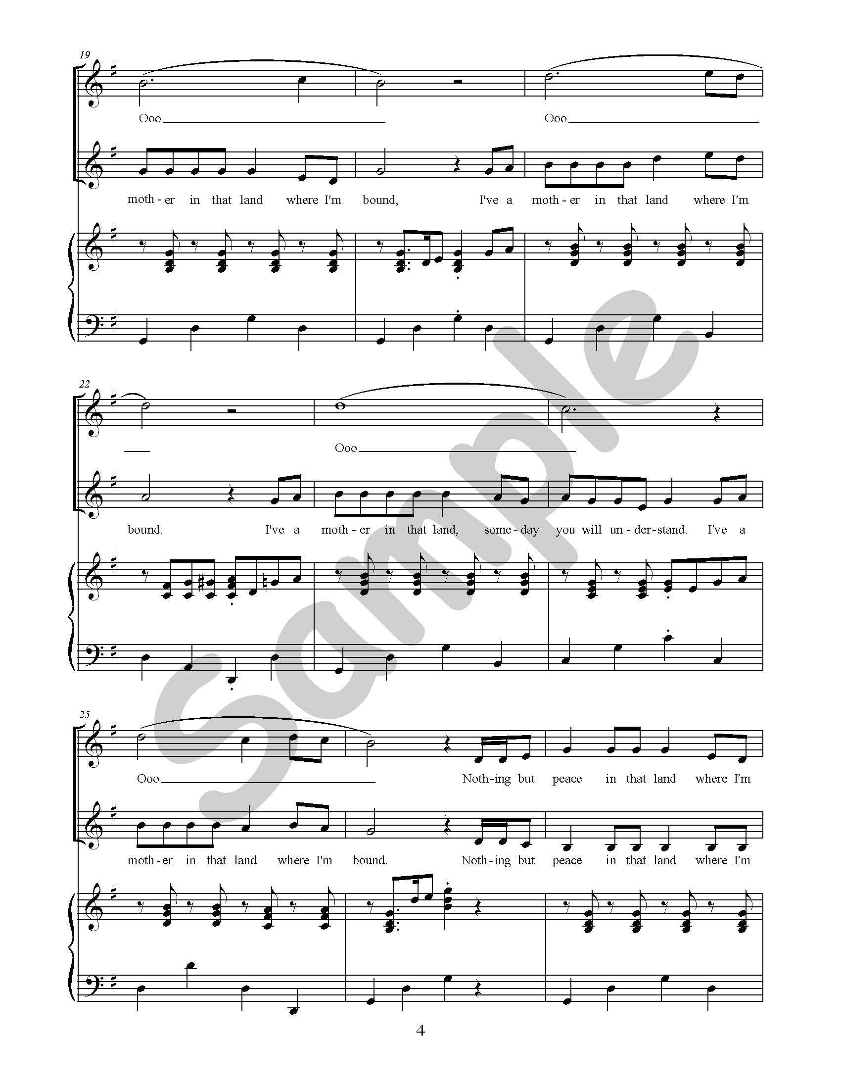 | Nothing but peace in that land where I'm bound. I've a father in that land where I'm bound. I've a mother in that land where I'm bound. Nothing but peace in that land where I'm bound. |