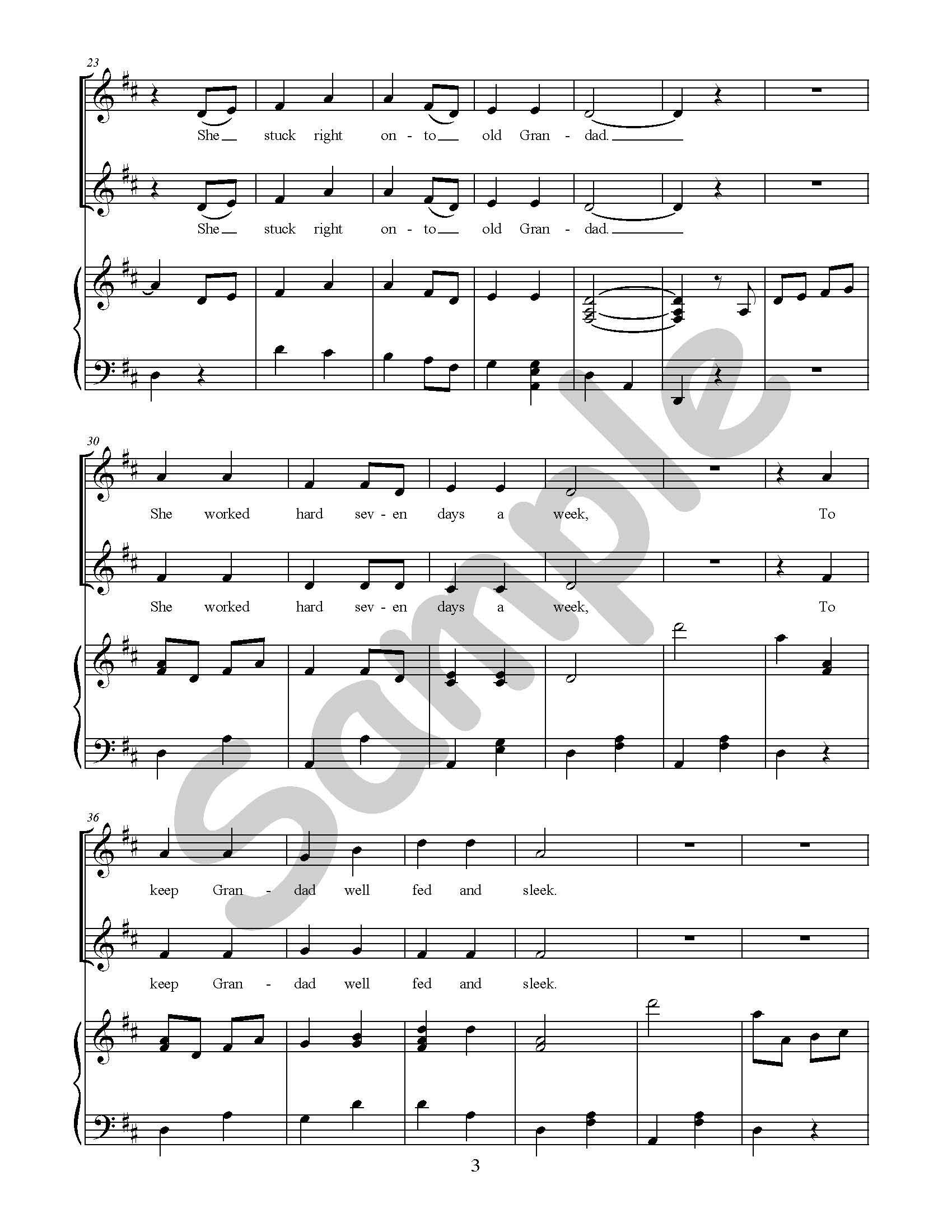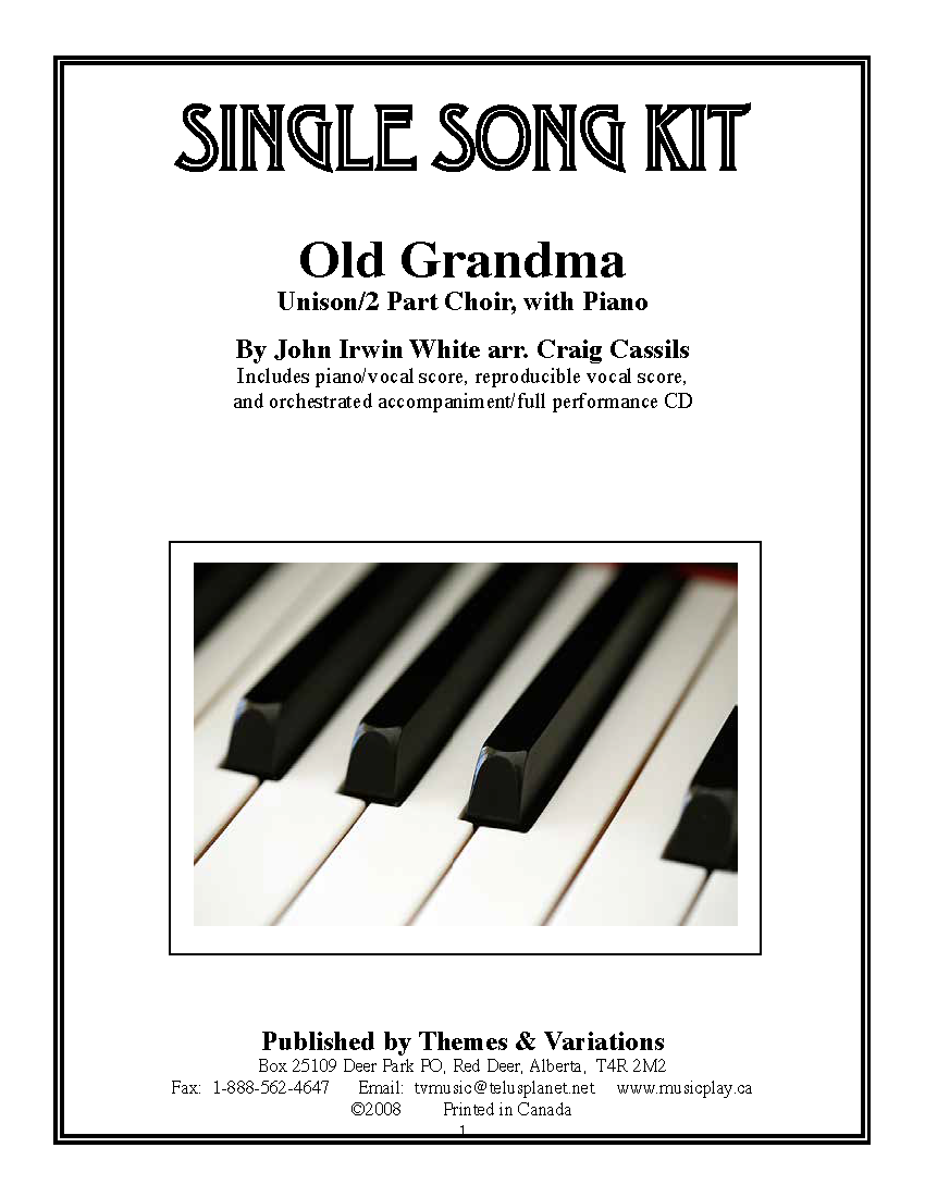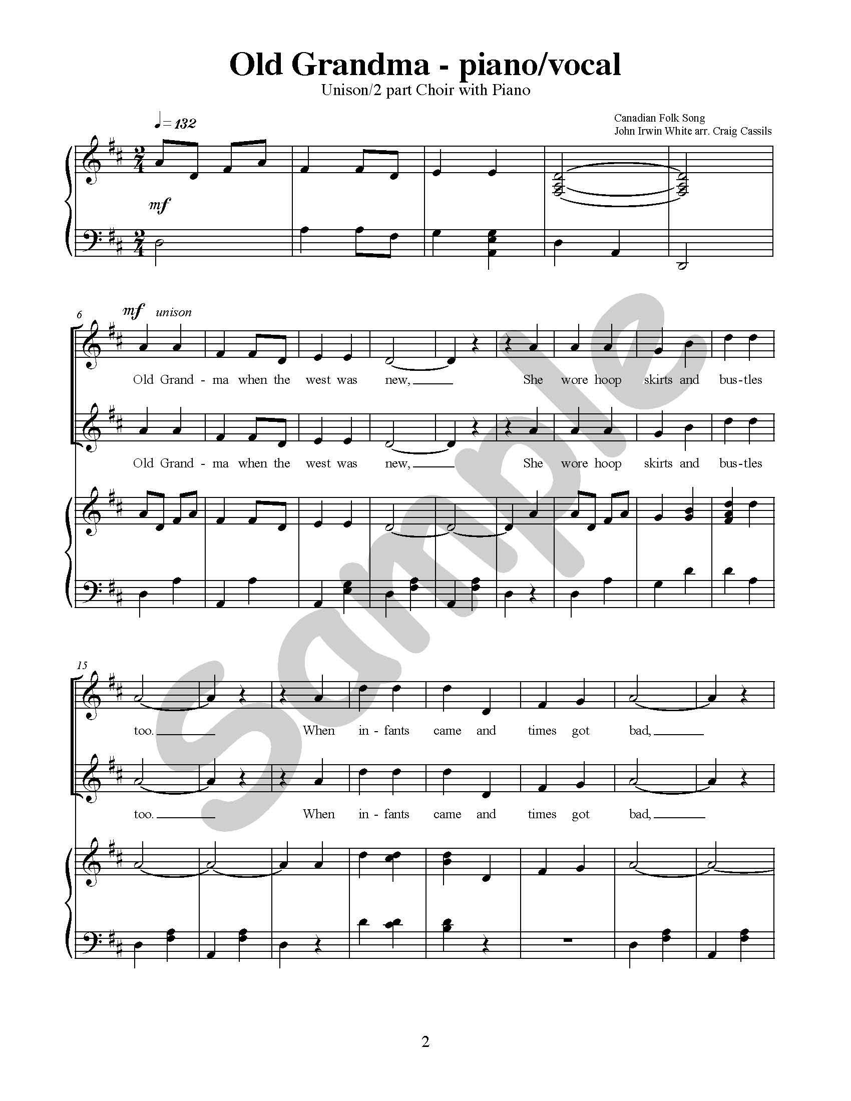 Old Grandma is a 2 part choral work by John Irwin White, arranged by Craig Cassils. This song is from the Canadian Folk Songs for Young Voices SA Volume 2 collection. If your students are not ready to sing in 2 parts, sing it in unison!