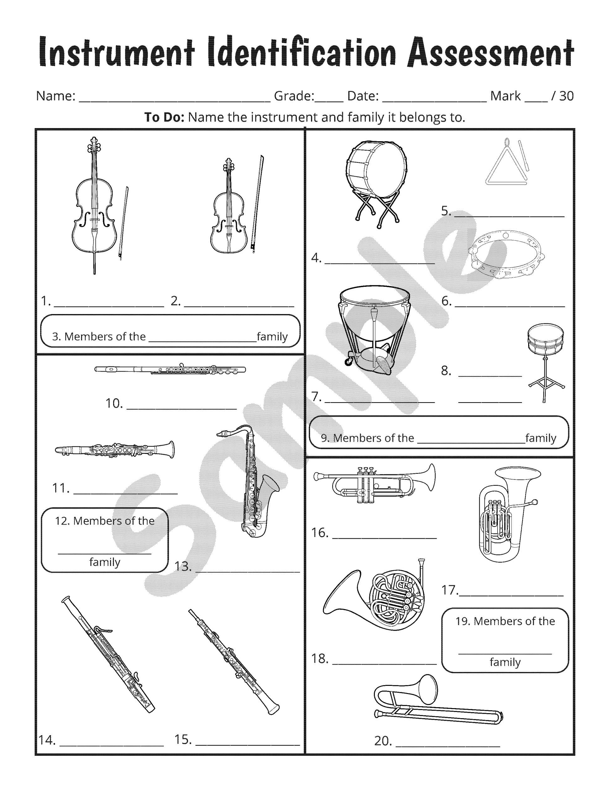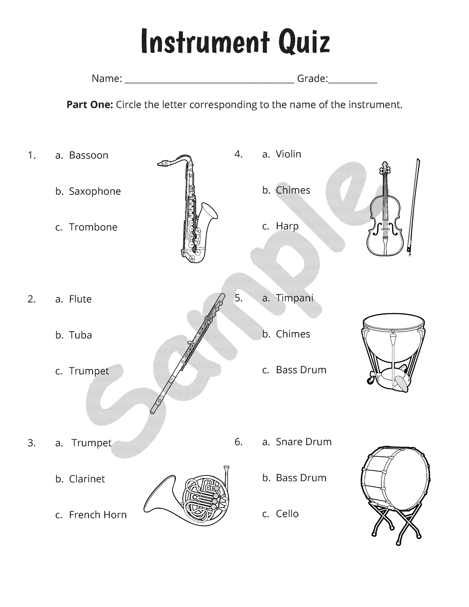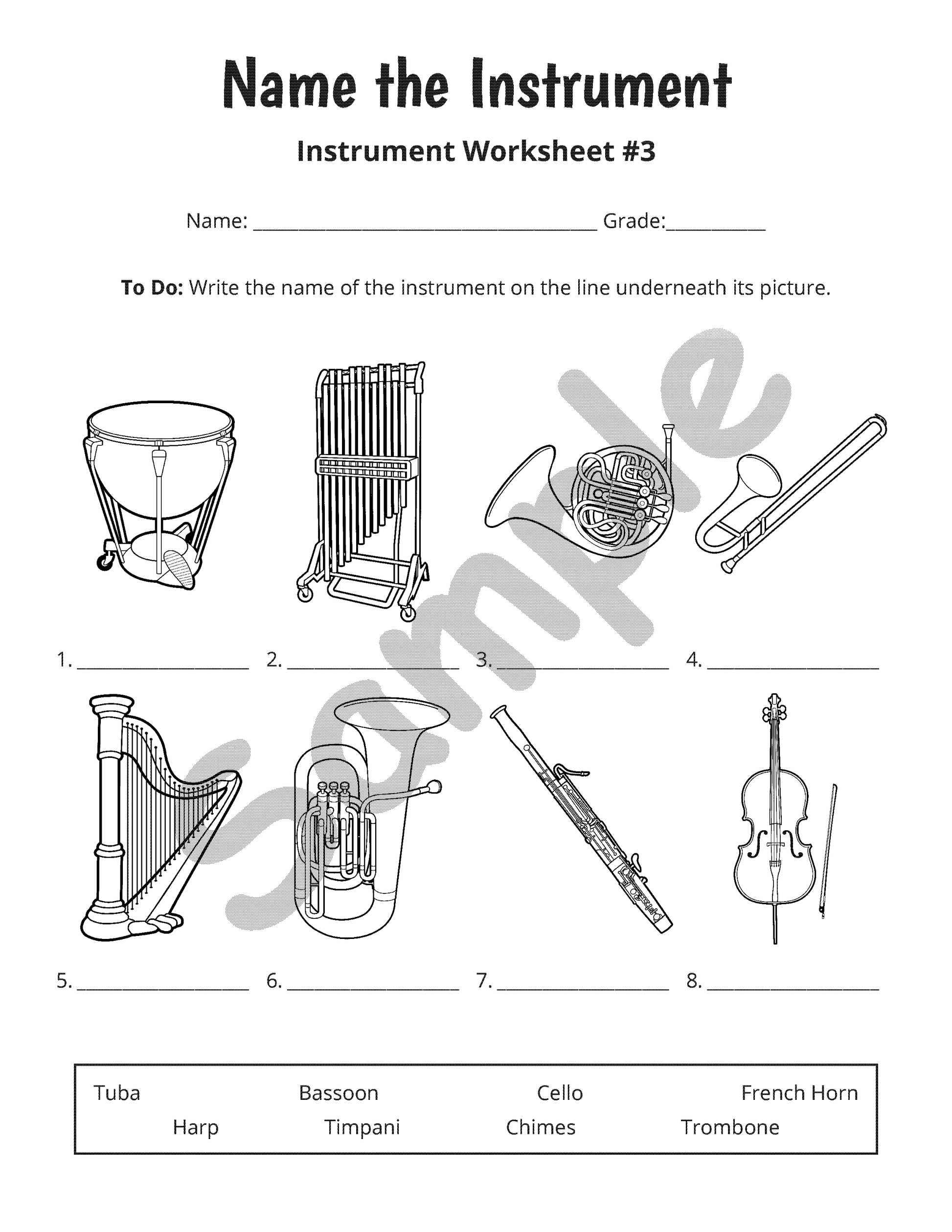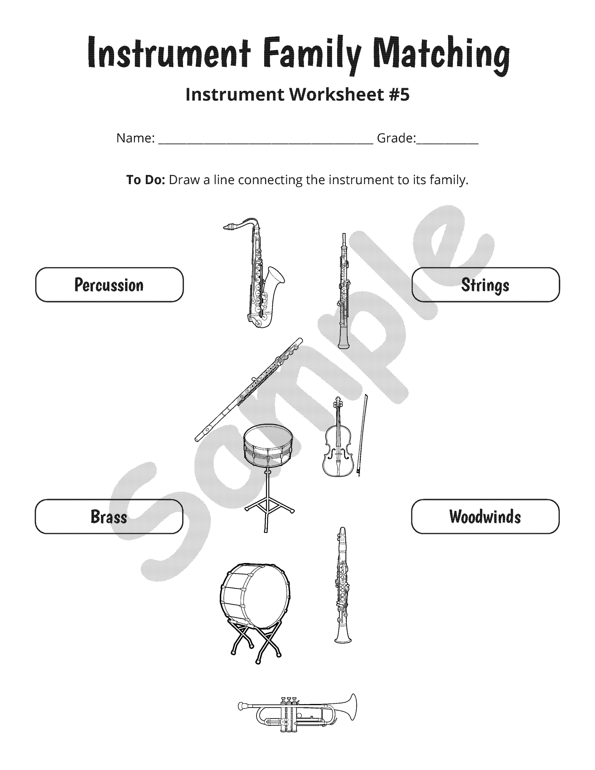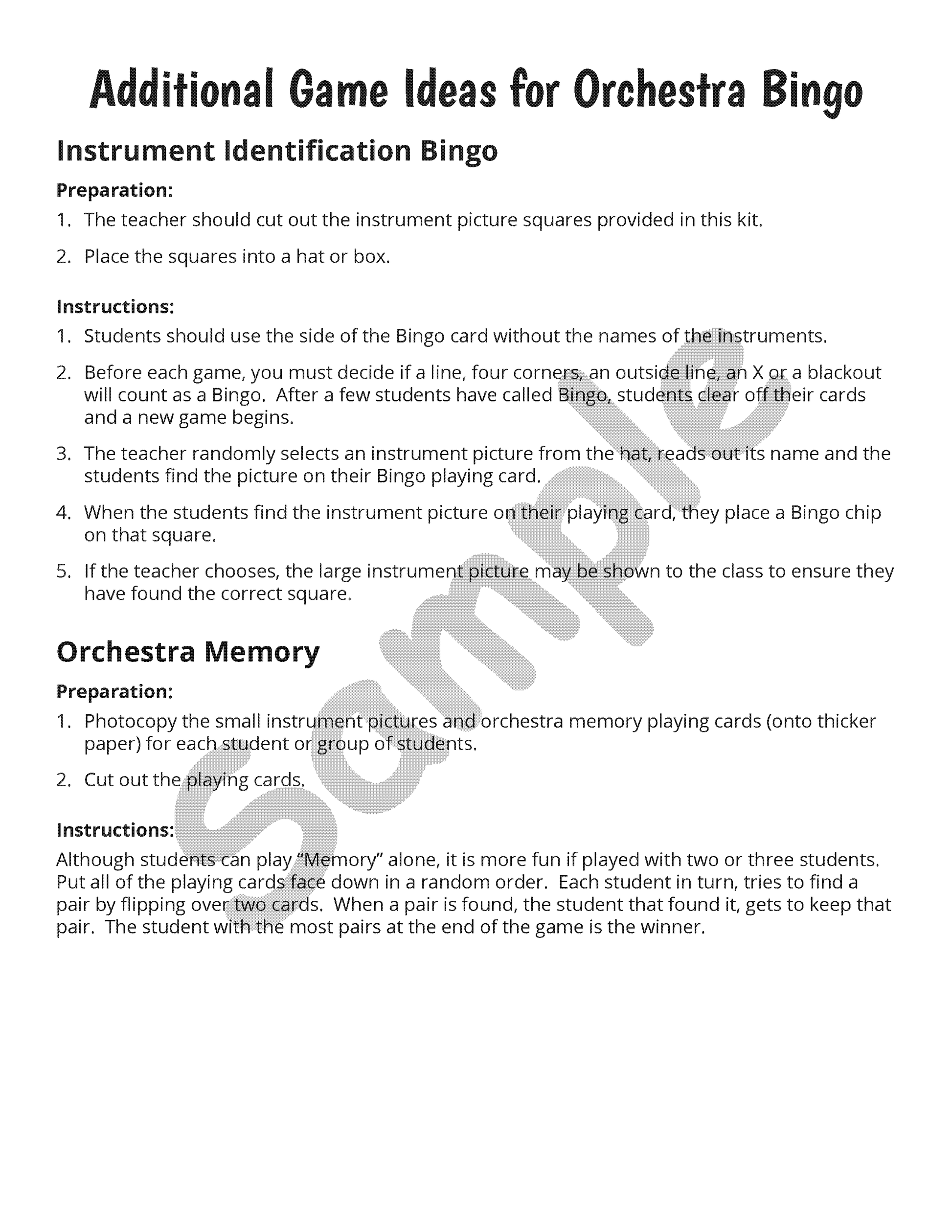 The kit includes more than the Bingo game. There are reproducible worksheets to practice naming instruments, categorizing instruments by family, and identifying instruments by timbre. You can use the worksheets and quizzes to teach, reinforce or assess your students. In addition, there are bonus games. These games include “Instrument Detective”, “Orchestra Memory” and “Go Fish!”
