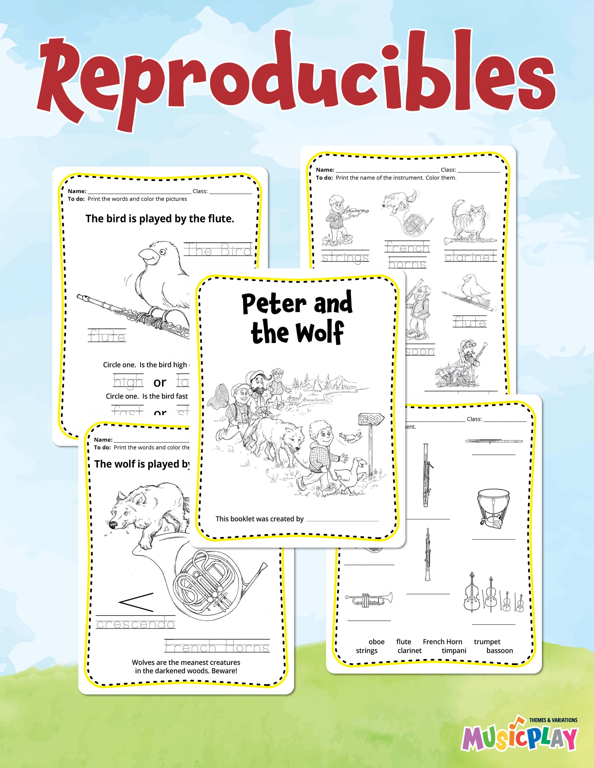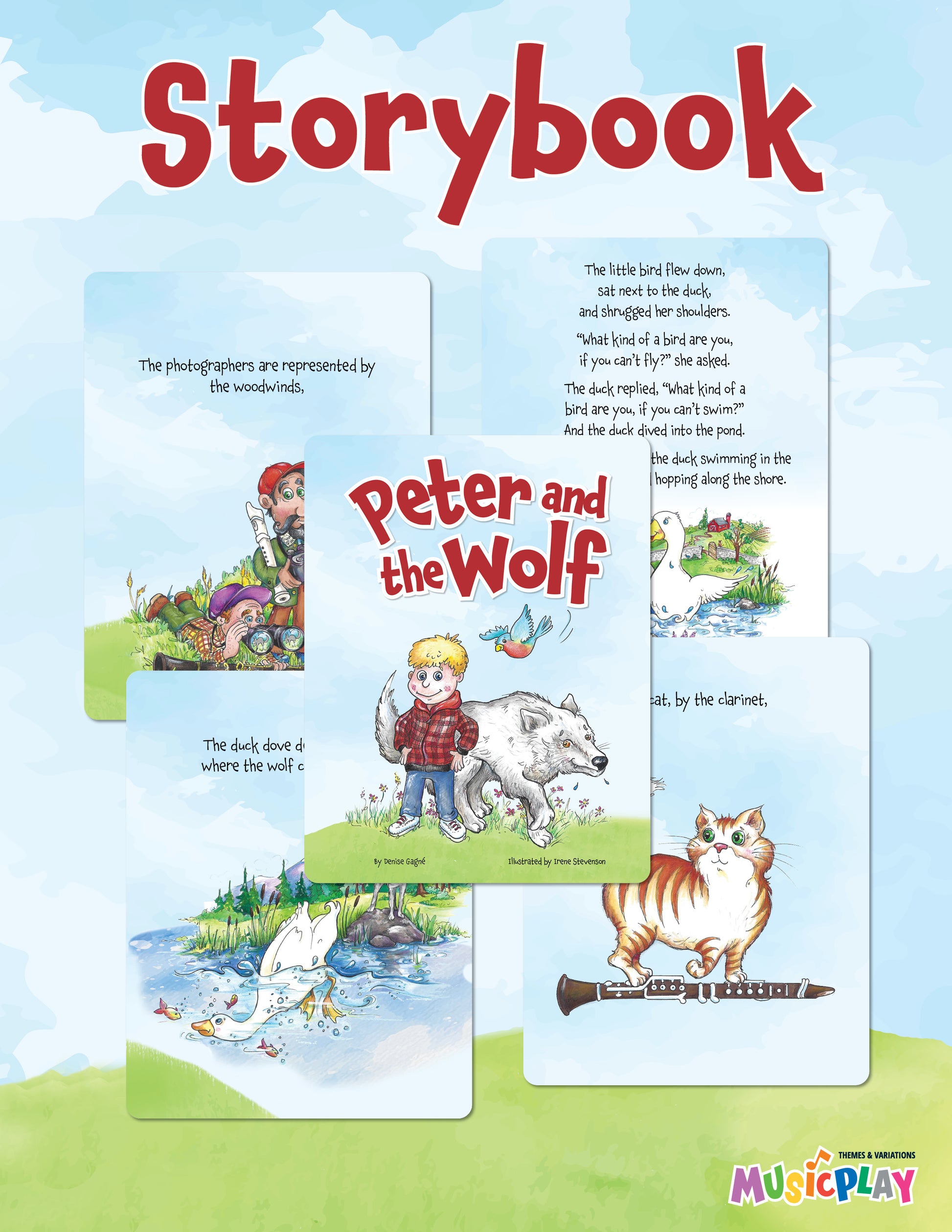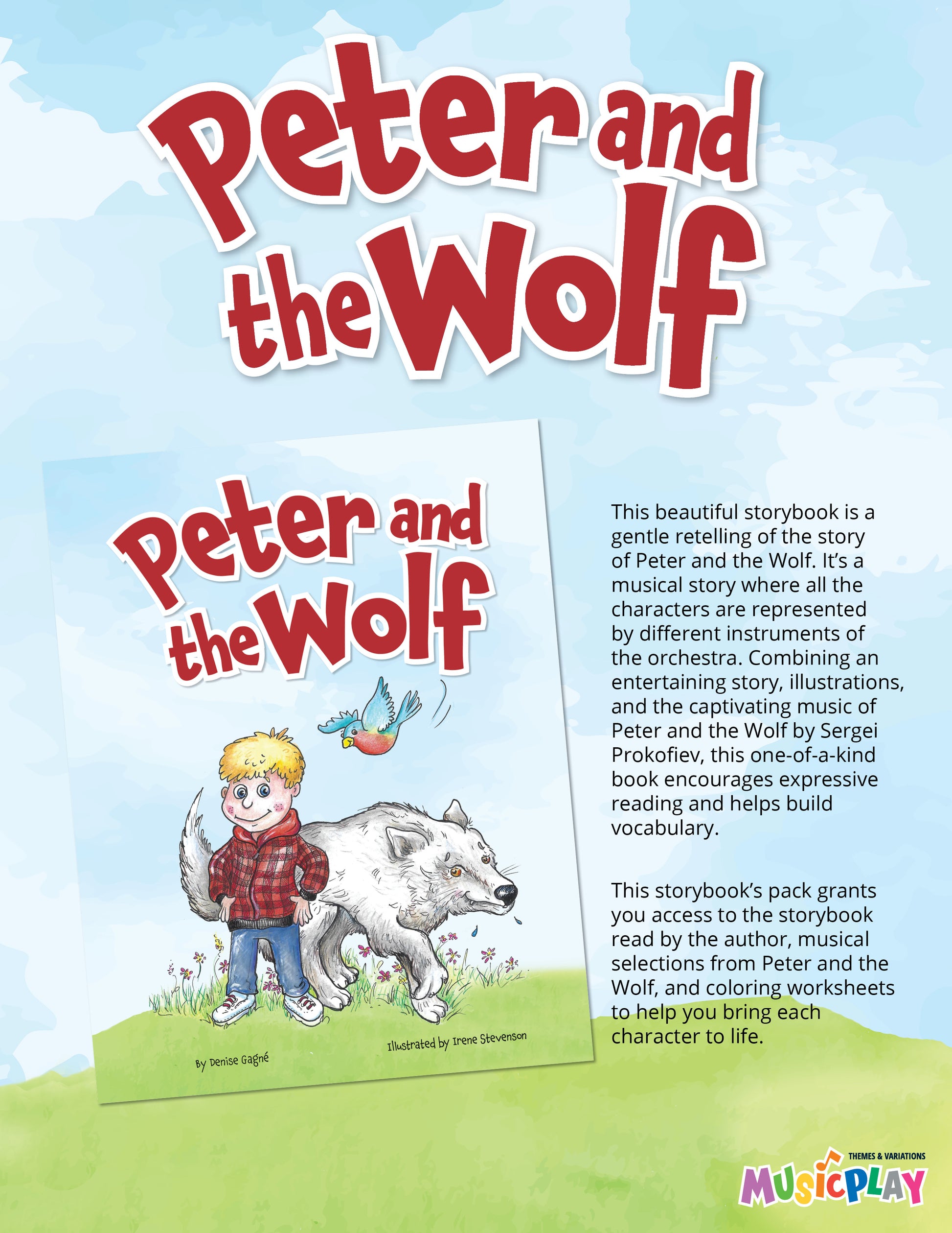 This storybook’s digital download pack grants you access to the storybook read by the author, musical selections from Peter and the Wolf, and coloring worksheets to help you bring each character to life.