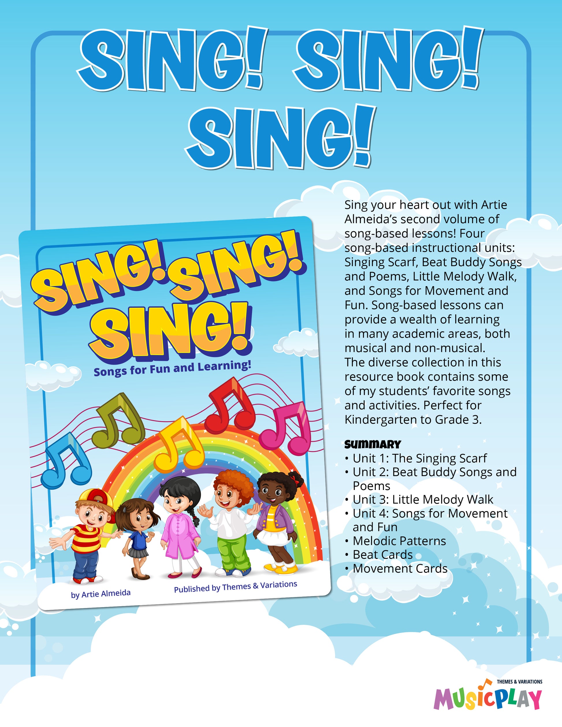 Song-based lessons can provide a wealth of learning in many academic areas, both musical and non-musical. The diverse collection in this resource book contains some of my students’ favorite songs and activities. I was grateful for the happiness they brought and the musical elements that could be illuminated in an active and engaging fashion.” – Artie Almeida, Ph. D