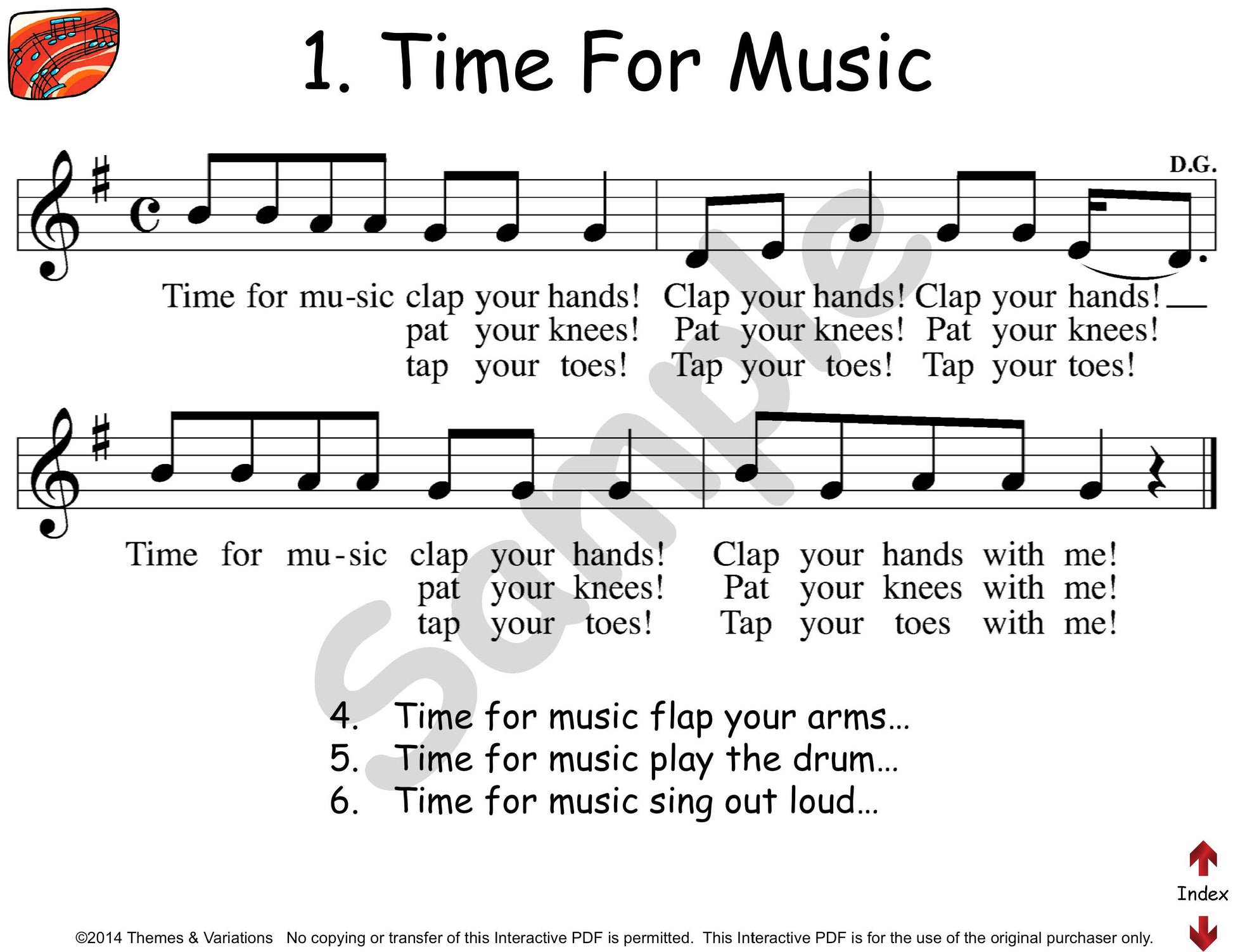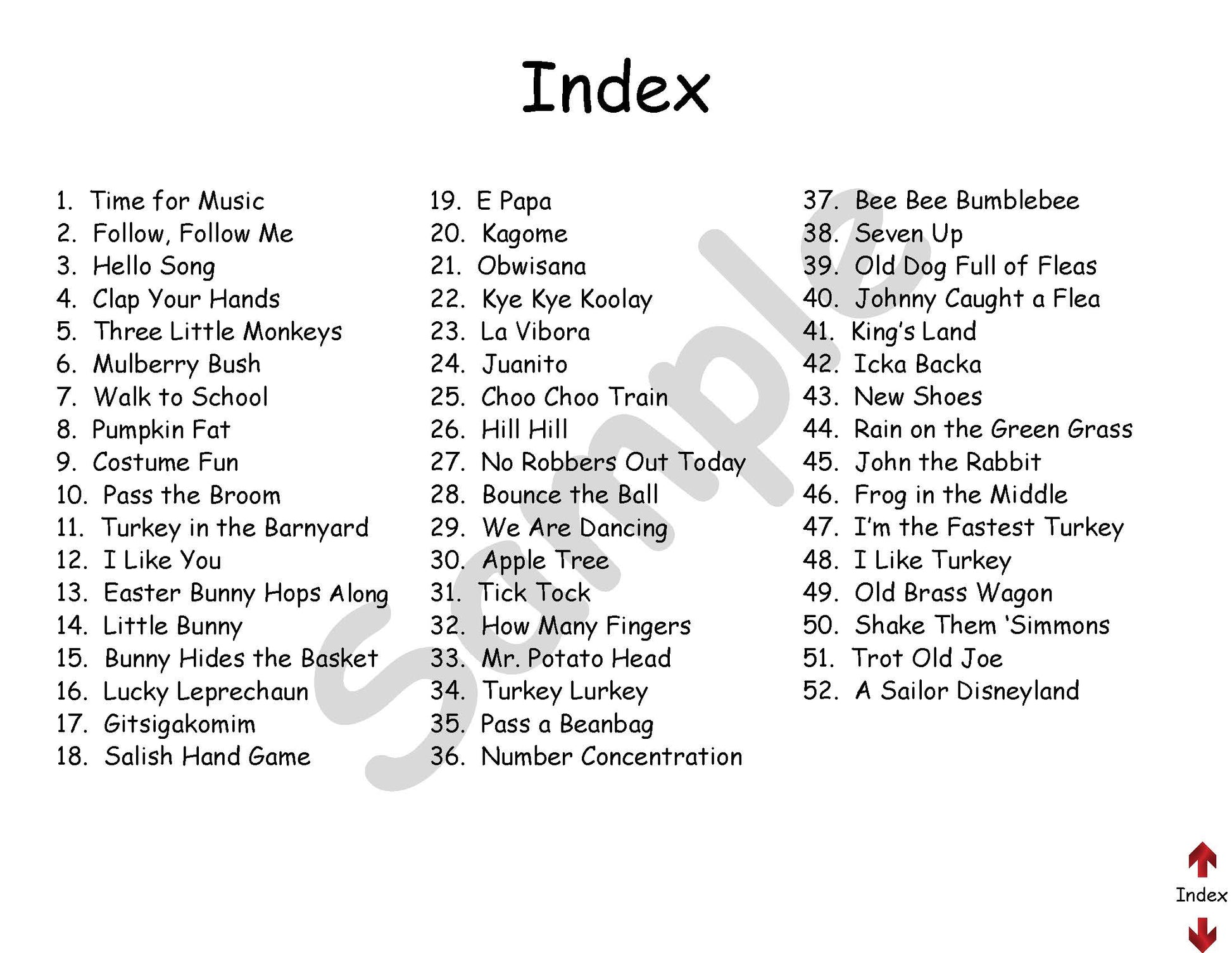 This collection includes a PowerPoint with all the songs ready to project on your Smartboard or screen. The songs are indexed to make it easy to click on the specific song that you want to teach.