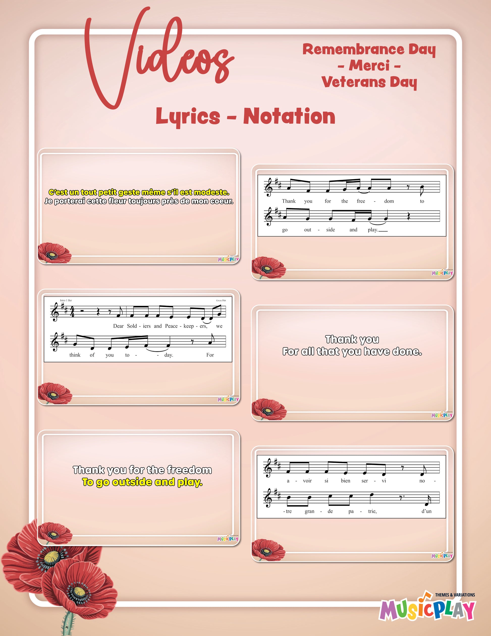 Dear soldiers and peace keepers, we think of you today. Chorus For those who’ve gone before us we wear a poppy small. Chorus I am just one person but I will do my part. Chorus Thank you for the freedom to go outside and play. |