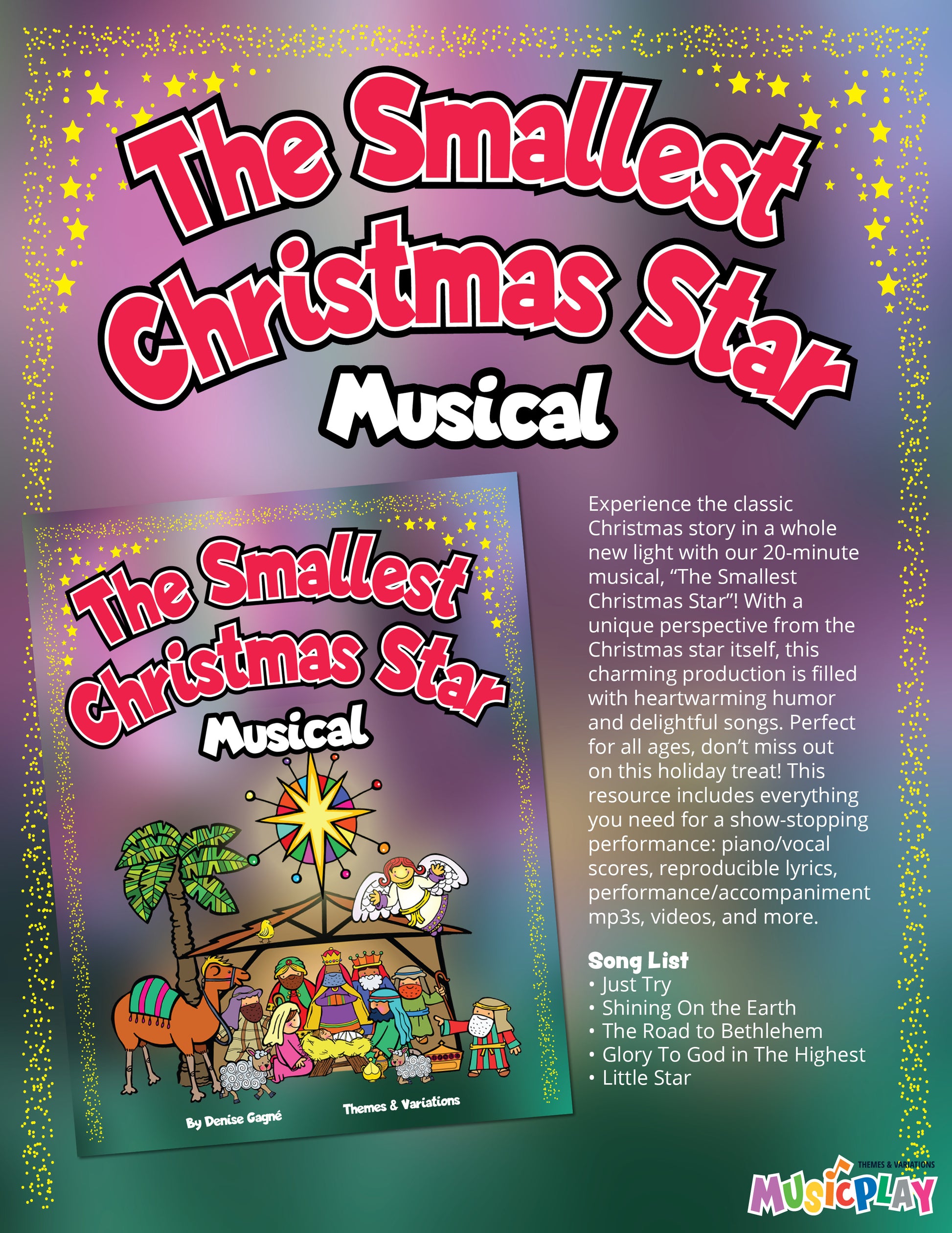 Experience the classic Christmas story in a whole new light with our 20-minute musical, "The Smallest Christmas Star"! With a unique perspective from the Christmas star itself, this charming production is filled with heartwarming humor and delightful songs. Perfect for all ages, don't miss out on this holiday treat!