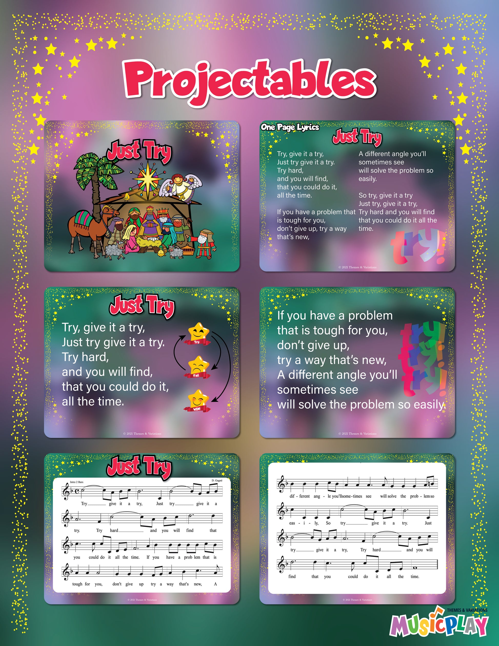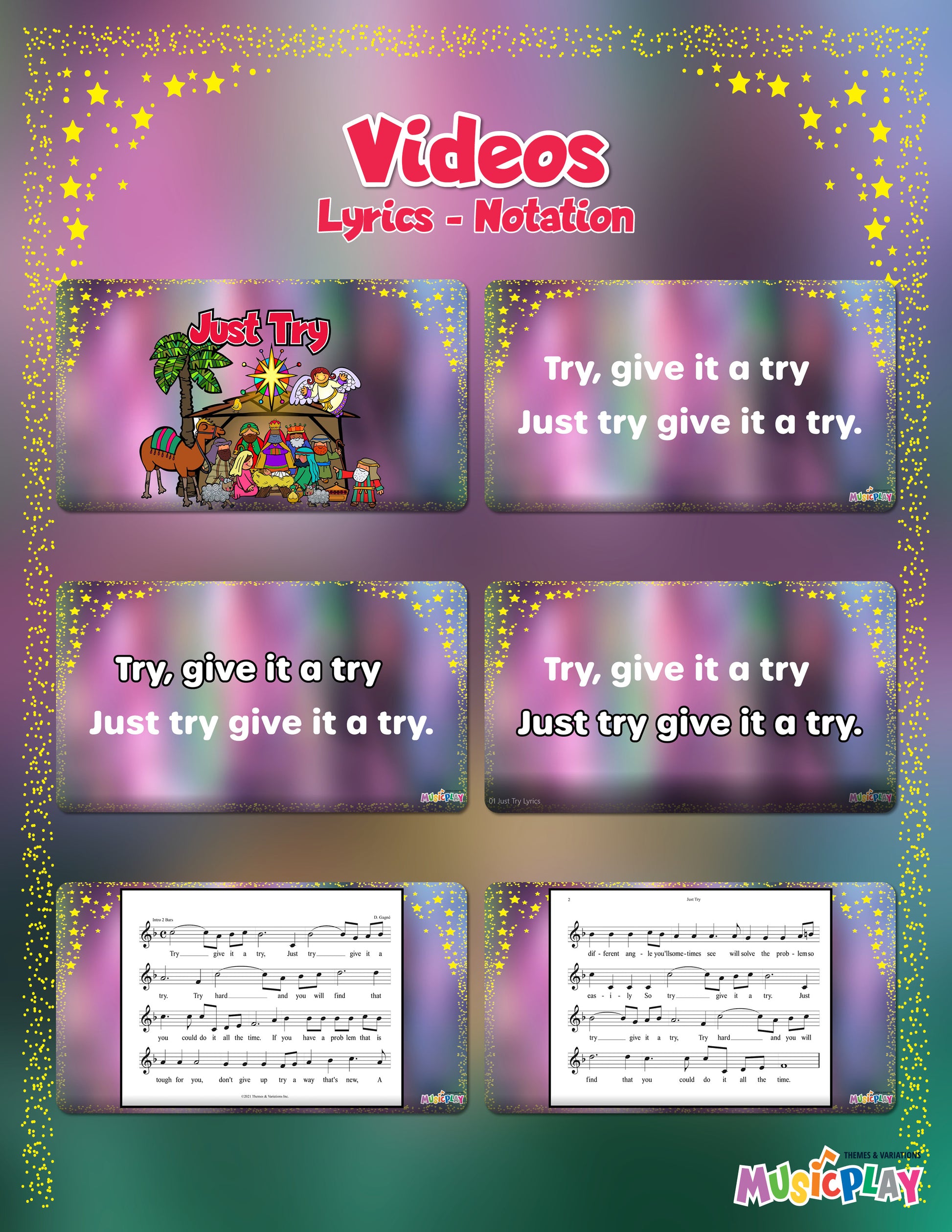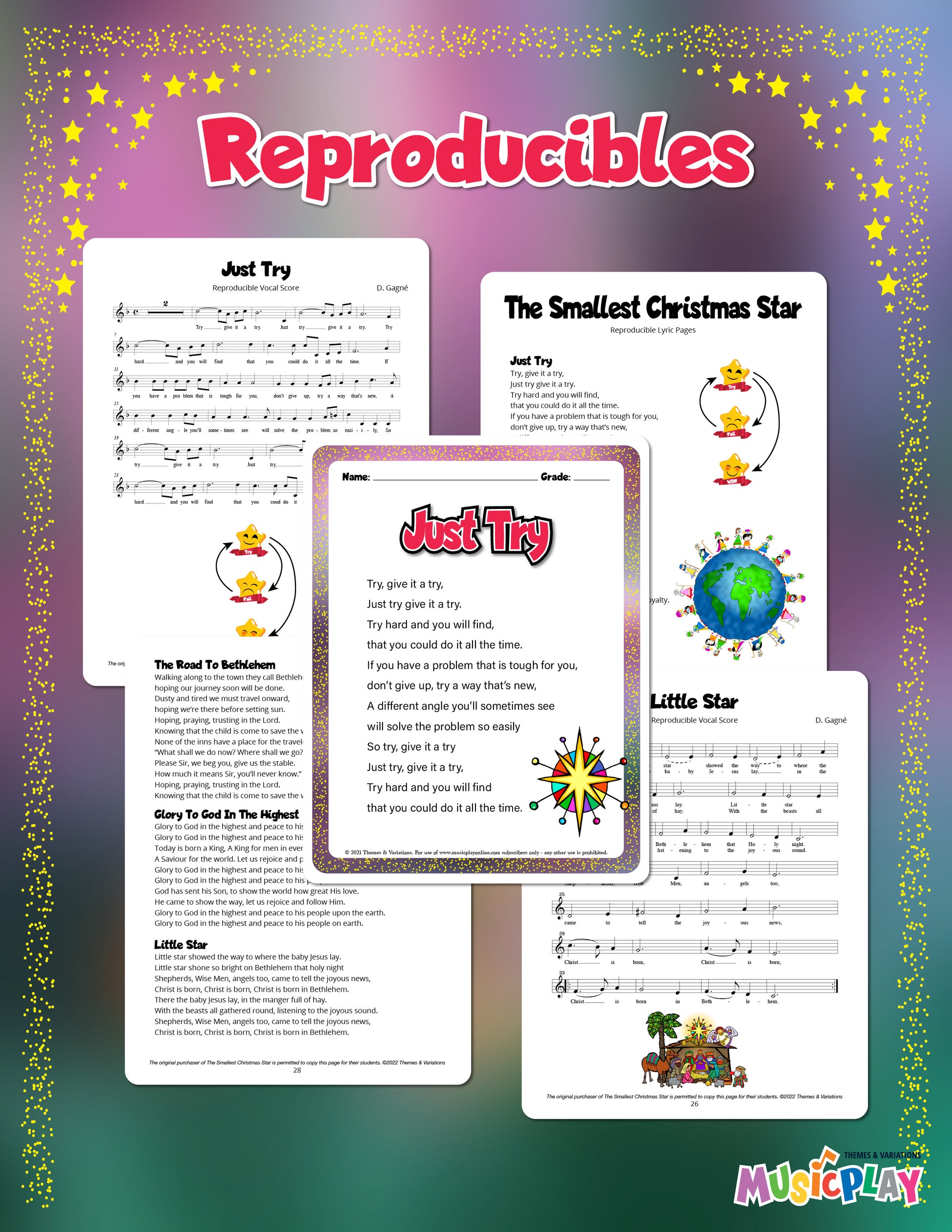 This resource includes everything you need for a show-stopping performance: piano/vocal scores, reproducible lyrics, performance/accompaniment mp3s, and even kids' demo videos.