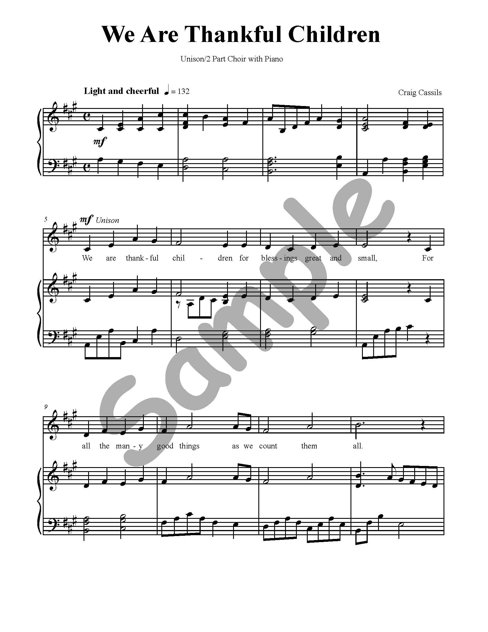 We Are Thankful Children is the newest Single Song Kit by Craig Cassils. This beautiful song is great for Thanksgiving or for concerts.