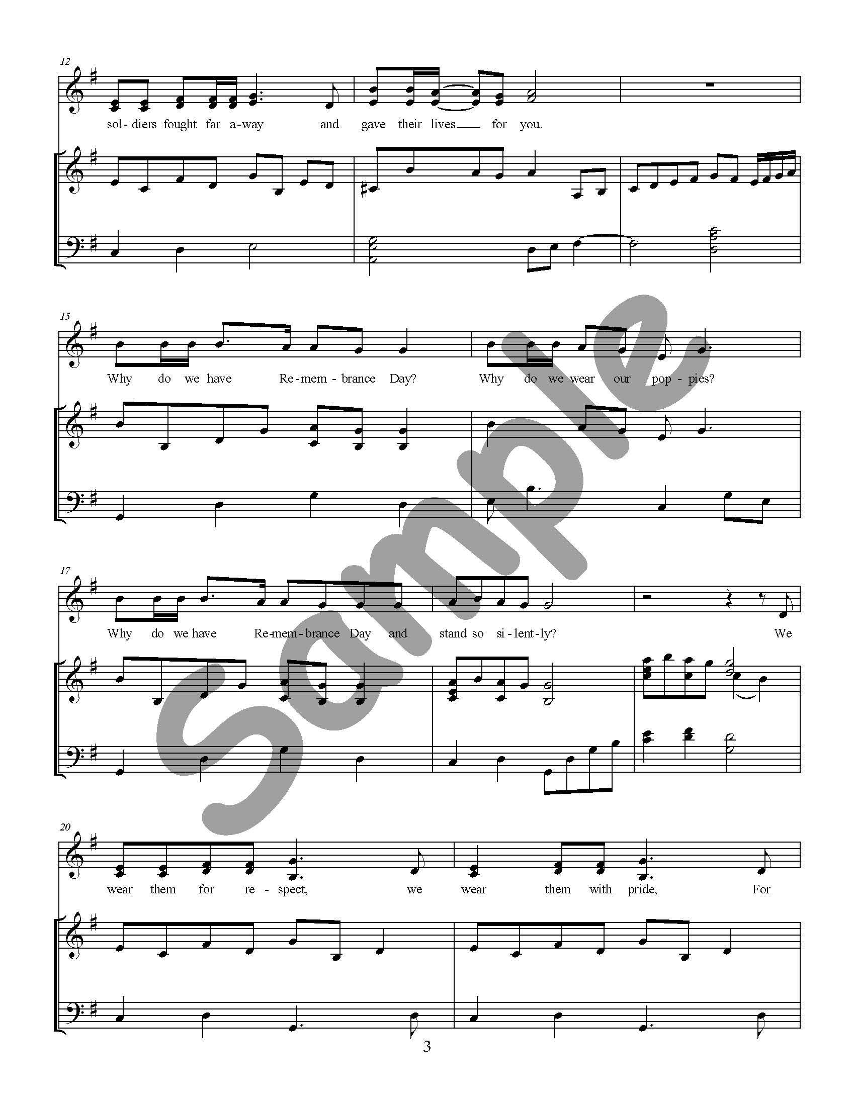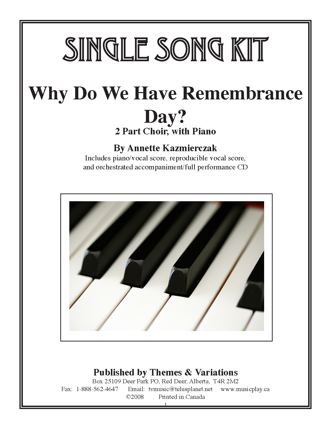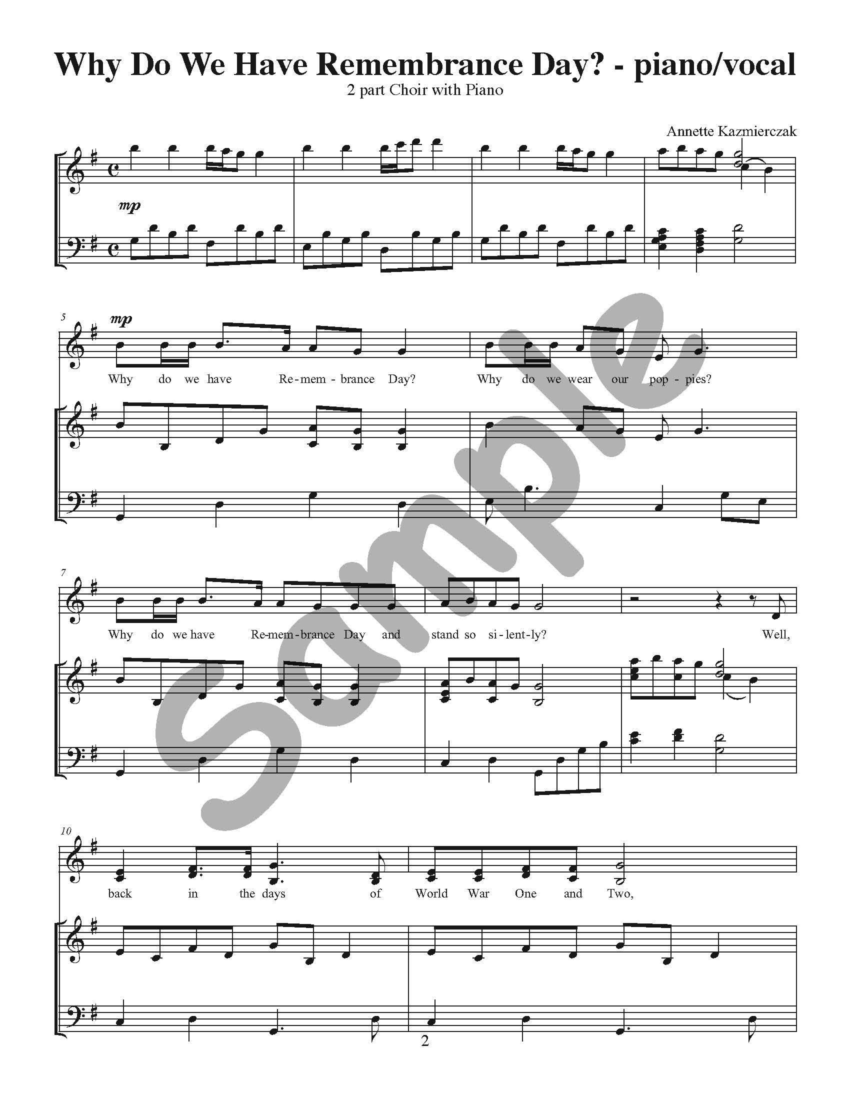 This is a 2 part choral arrangement of Why Do We Have Remembrance Day, composed by Annette Kazmierczak. This song is from the We Remember collection.