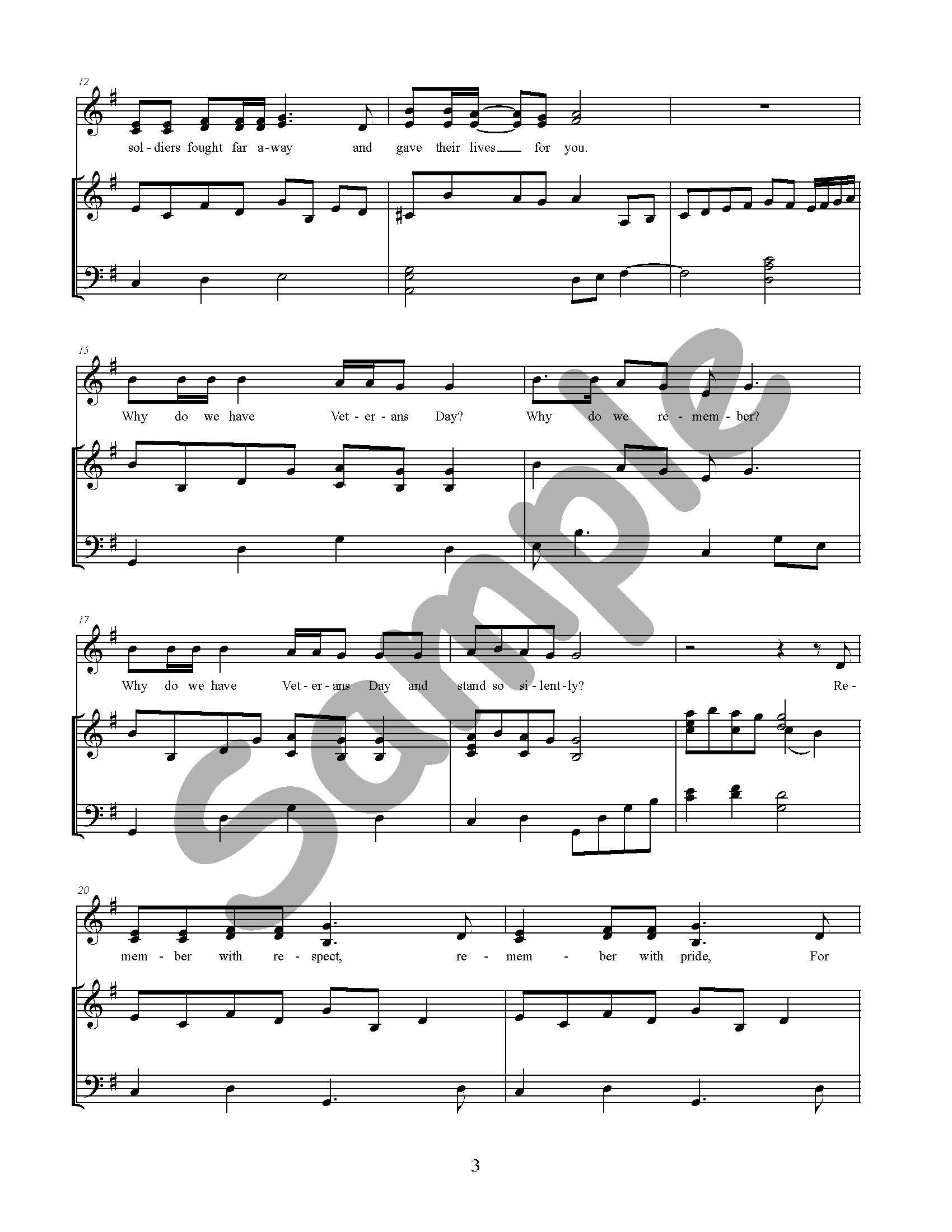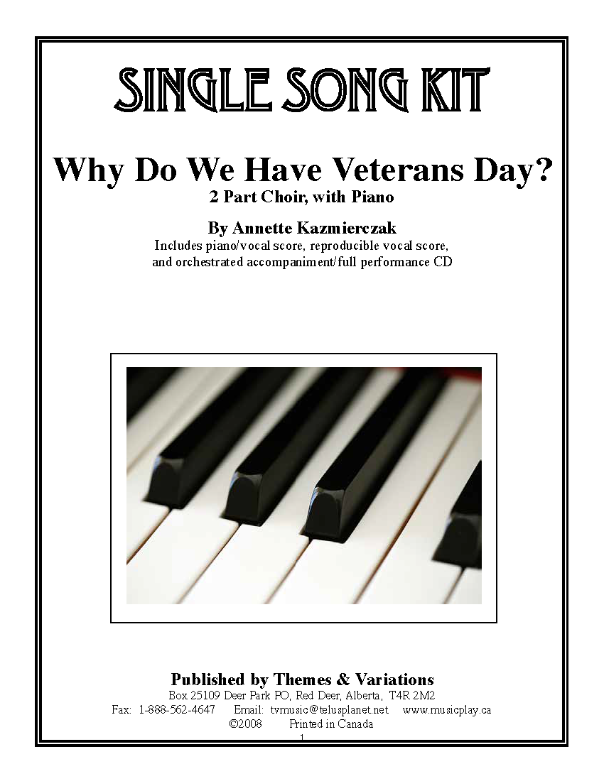 This is a 2-part choral arrangement of Why Do We Have Veterans Day, composed by Annette Kazmierczak. This song is from the We Remember collection.